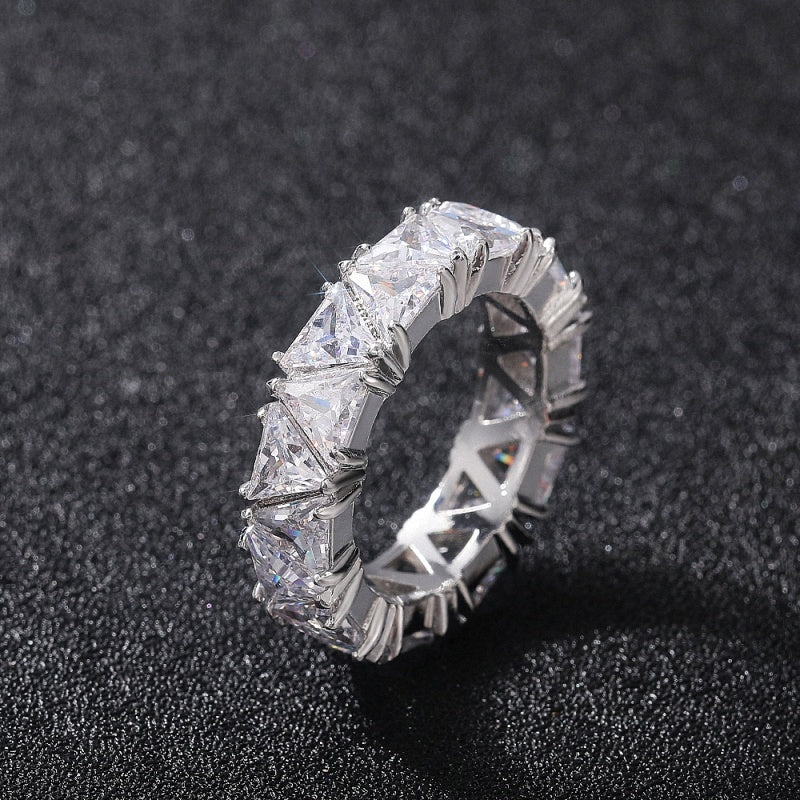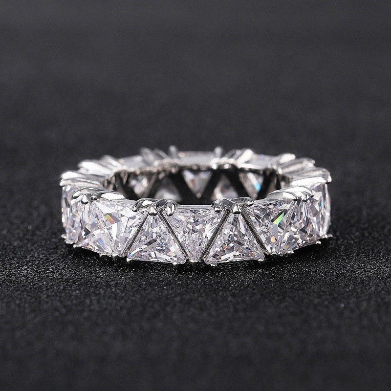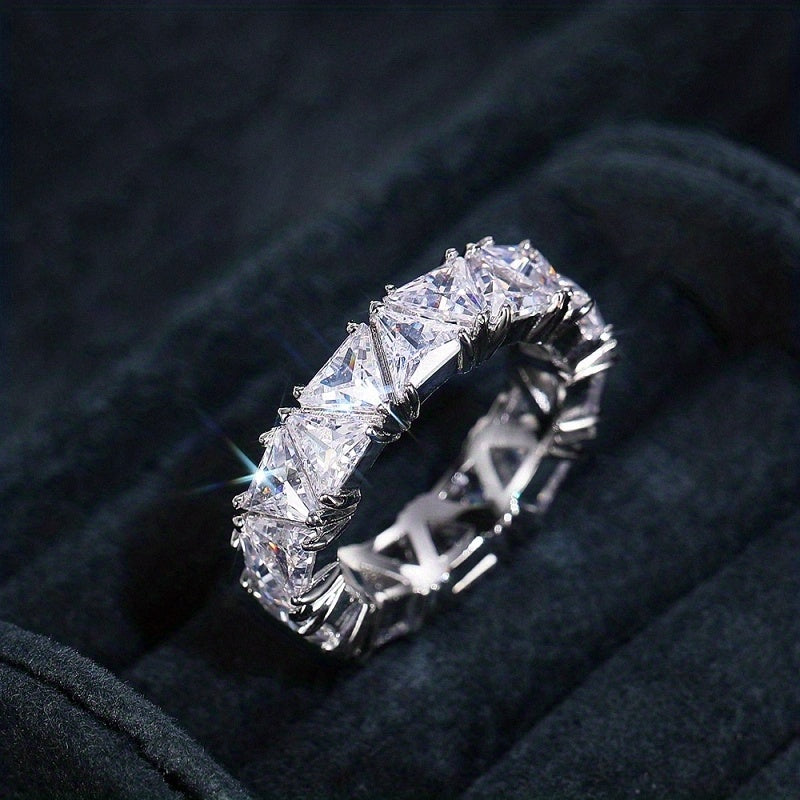 Beautiful triangle cut zircon eternity band crafted in 925 silver, perfect for engagement and bridal wear.