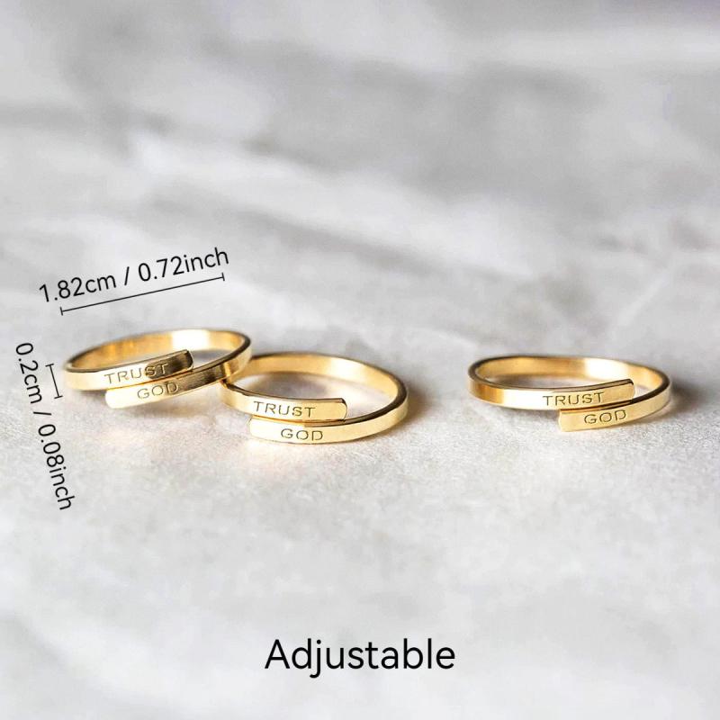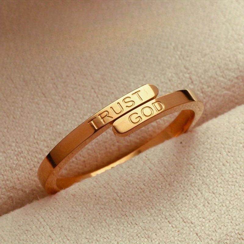 Beautifully designed ring with 'Trust God' engraving in golden tone. Perfect for gifting to friends at parties or special occasions.
