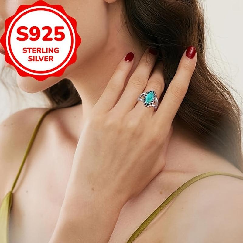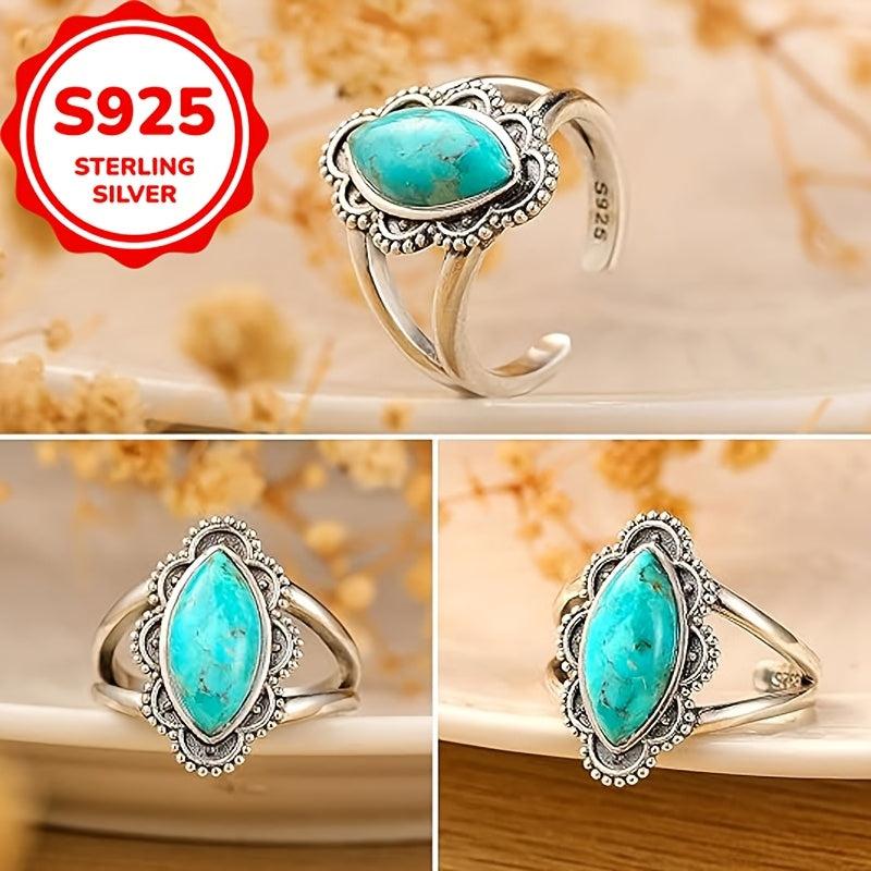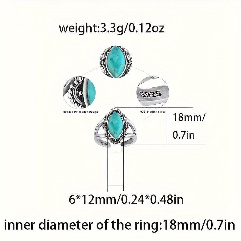 Elevate your style with this delicate marquise shaped ring featuring a beaded petal edge design and turquoise inlay. Made of high-quality S925 silver, this adjustable open ring is perfect for everyday wear.