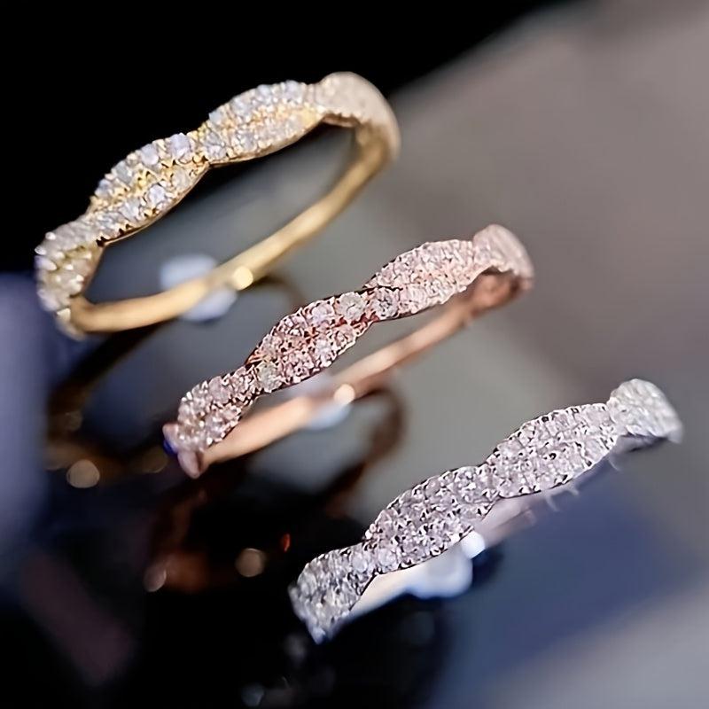 Shine bright with this sparkling ring featuring intricate twisted design and cubic zirconia. Perfect for Valentine's parties or everyday wear, an ideal gift for her eternal love symbol.