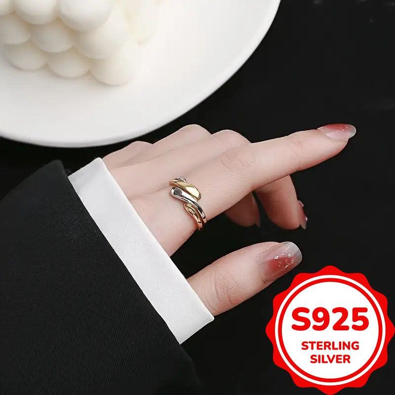 Two Tone 925 Sterling Silver Rings for Women Adjustable Casual Jewelry