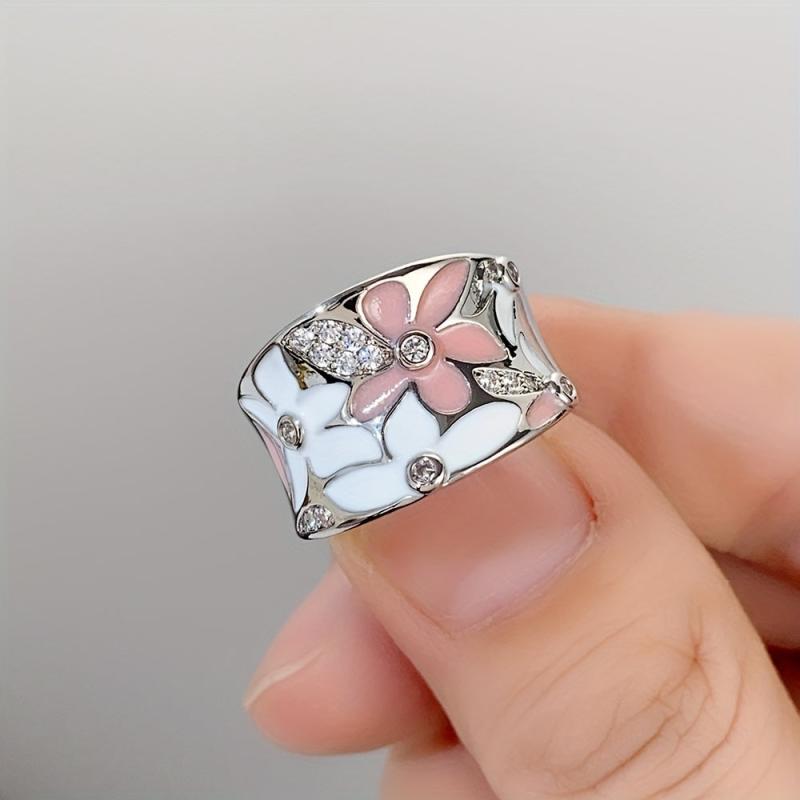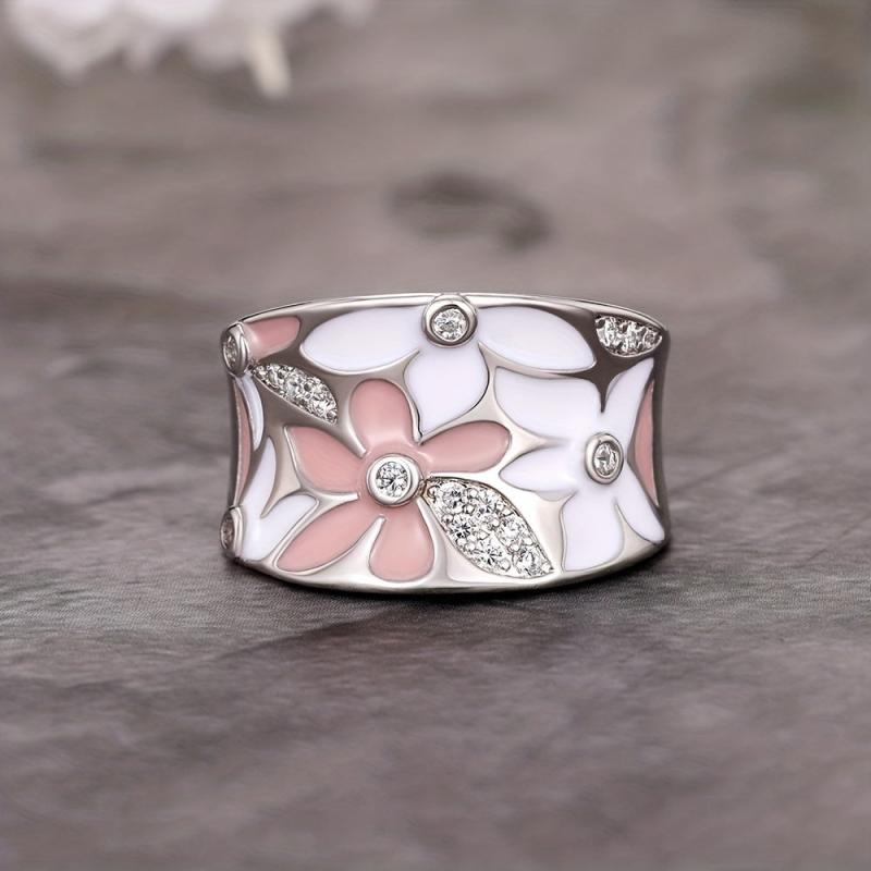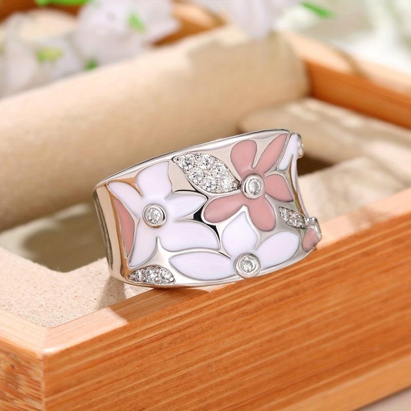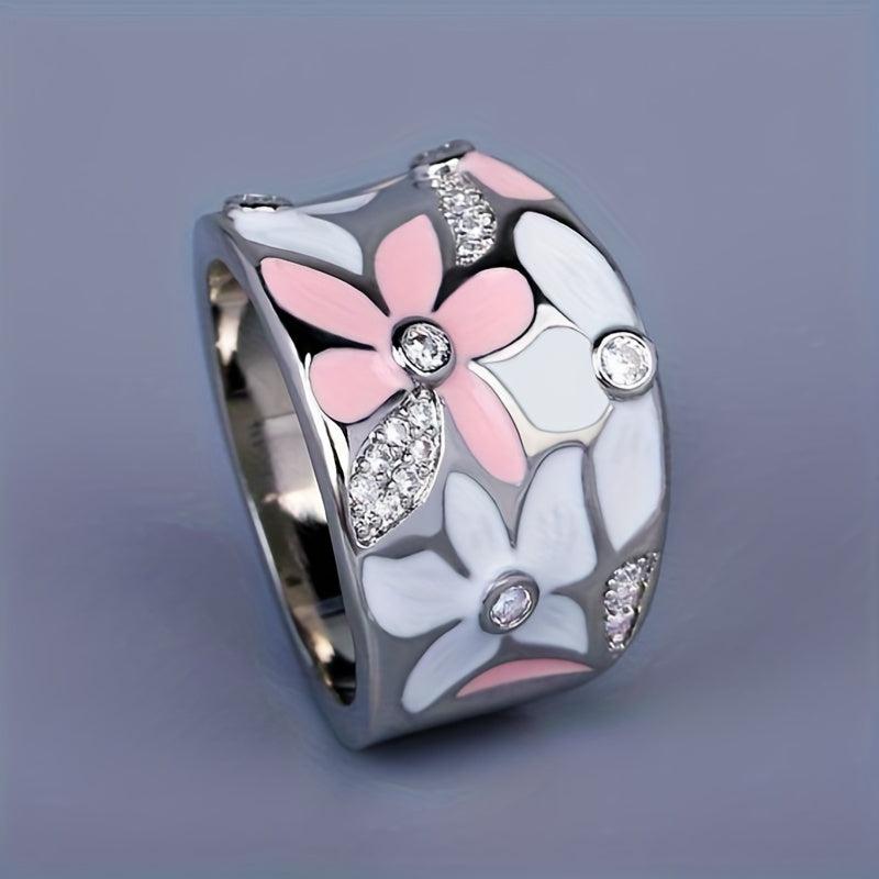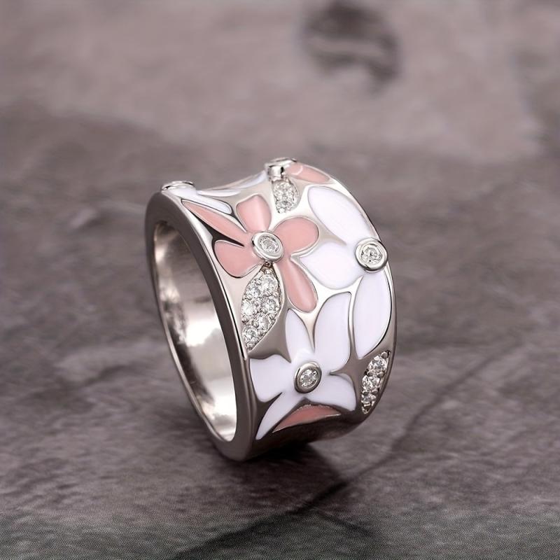 This wide band ring features a floral design with sparkling cubic zirconia, making it perfect for daily wear and parties. Crafted from copper, this ring is a stylish accessory for any occasion.