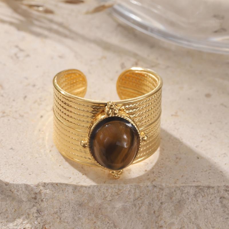 Add a touch of elegance to your daily and holiday outfits with this stainless steel ring featuring a natural stone. Perfect for all occasions.