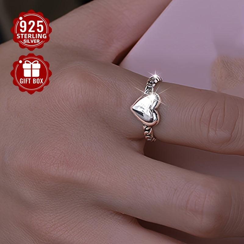 Beautiful heart shaped ring made of 925 sterling silver plating, ideal for Valentine's or wedding gift occasions.