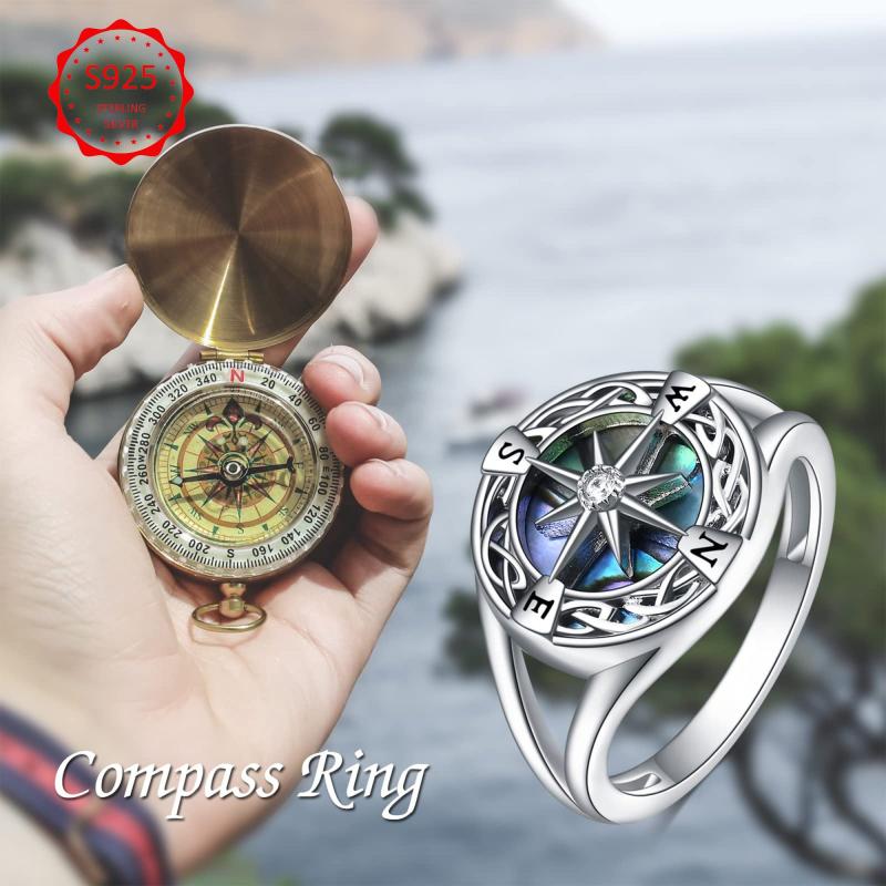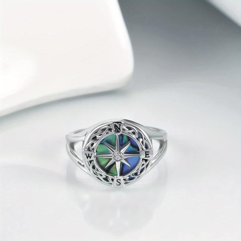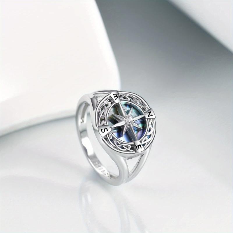 This pure silvery ring features an abalone shell compass design, making it a perfect graduation jewelry gift for women and girls.