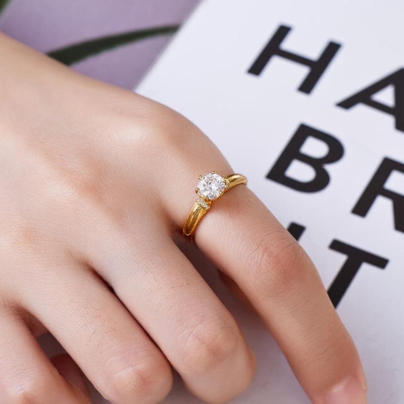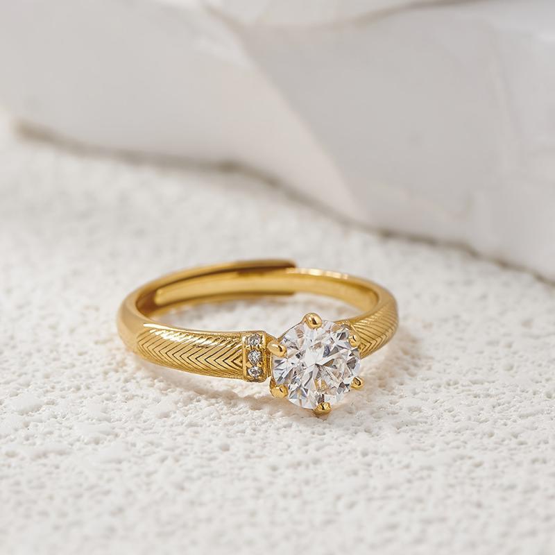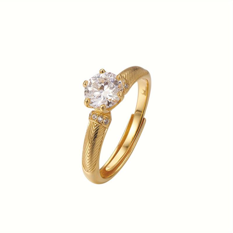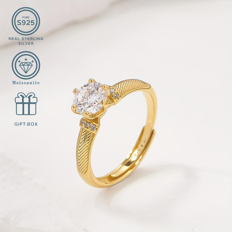 This vintage ring features a 0.8ct moissanite stone set in 24K gold plated 925 sterling silver. Ideal for daily wear, parties, and banquets. Perfect gift for couples.