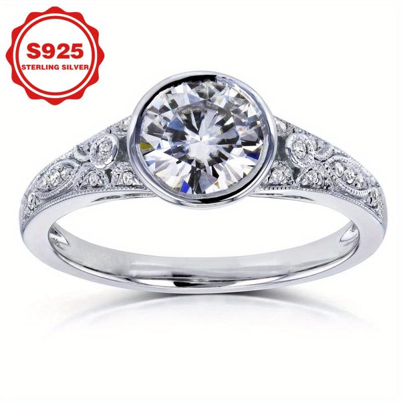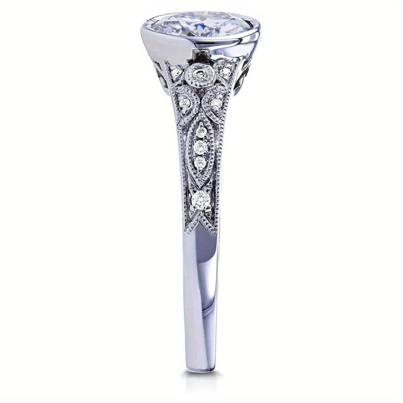Elegant 925 silver engagement ring with a vintage design featuring synthetic zirconia. Perfect for weddings and special occasions.