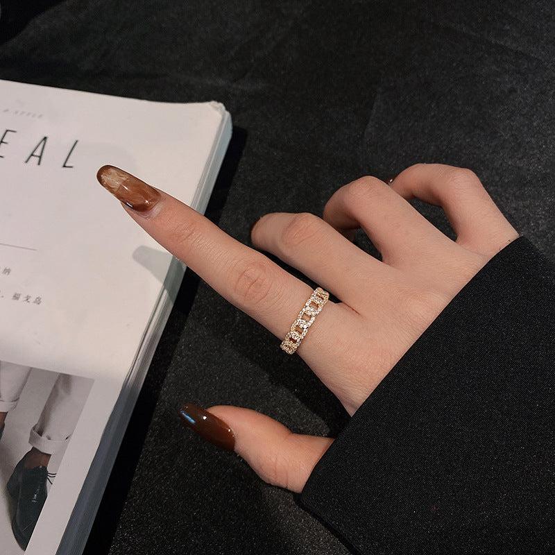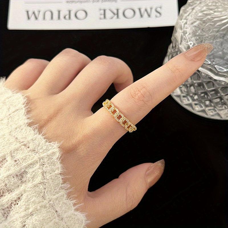 This vintage-inspired open ring features a sparkling twist chain in a golden tone, making it a perfect gift for women to wear daily or on special occasions.