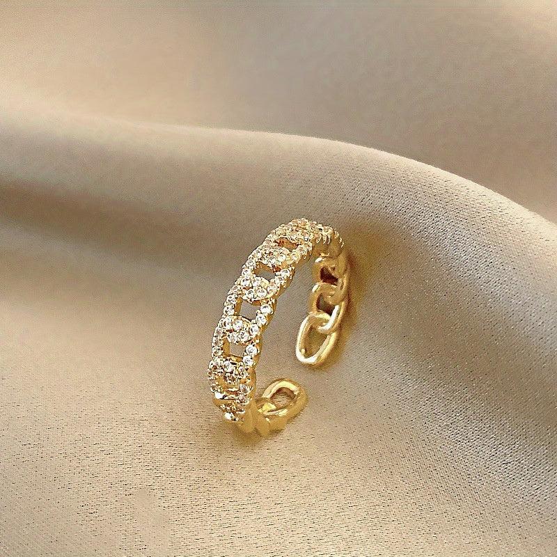This vintage adjustable open ring features a synthetic chain link design with a February birthstone, plated in golden KC. It is a perfect gift for daily wear and special occasions.