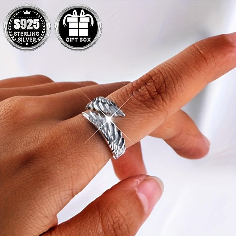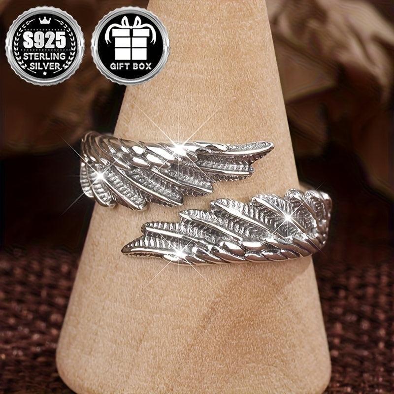 Add a touch of personality with this vintage bohemian angel wing open ring. Crafted from 925 silver, it's perfect for daily wear, parties, vacations, and makes a thoughtful gift for mothers.