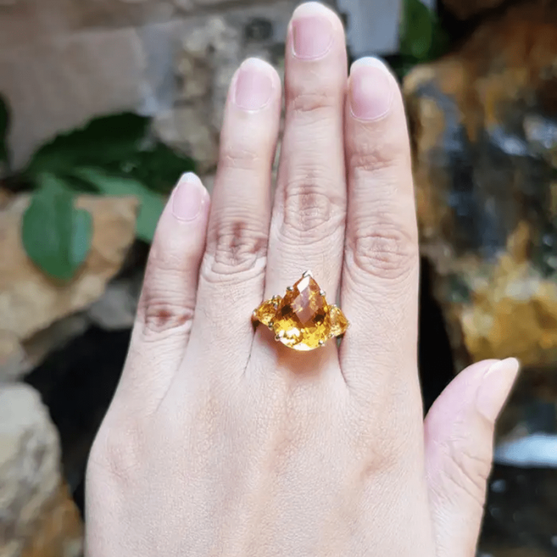 Vintage Bohemian Ring with Three Yellow Zirconia Stones