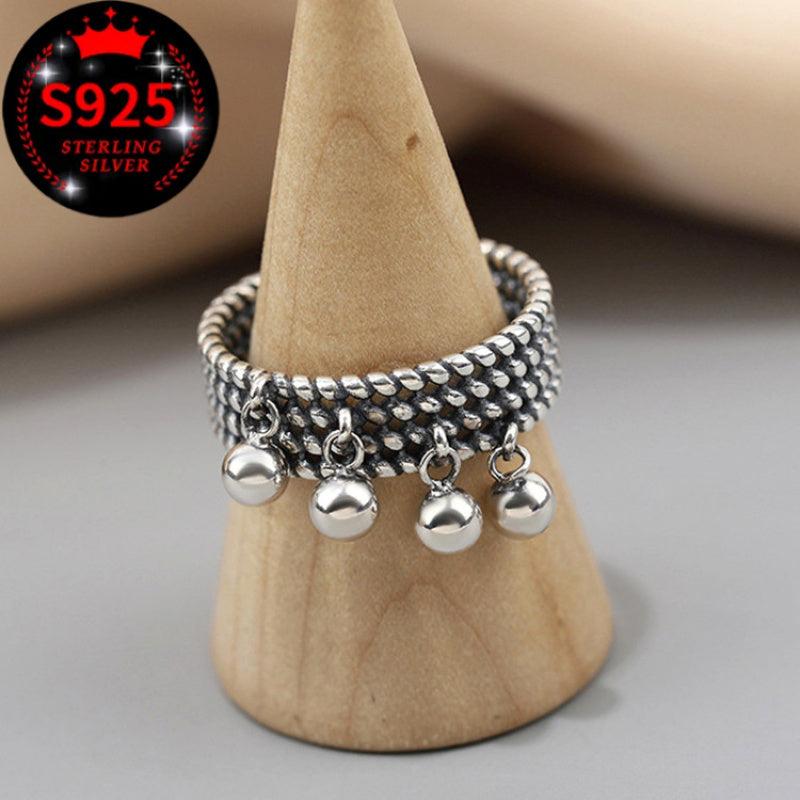 This 925 sterling silver ring features an open adjustable design with tassel beads and a layer braided glossy finish. Perfect for daily wear, beach vacations, or as a thoughtful Mother's Day gift.