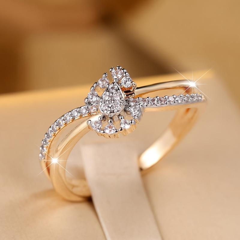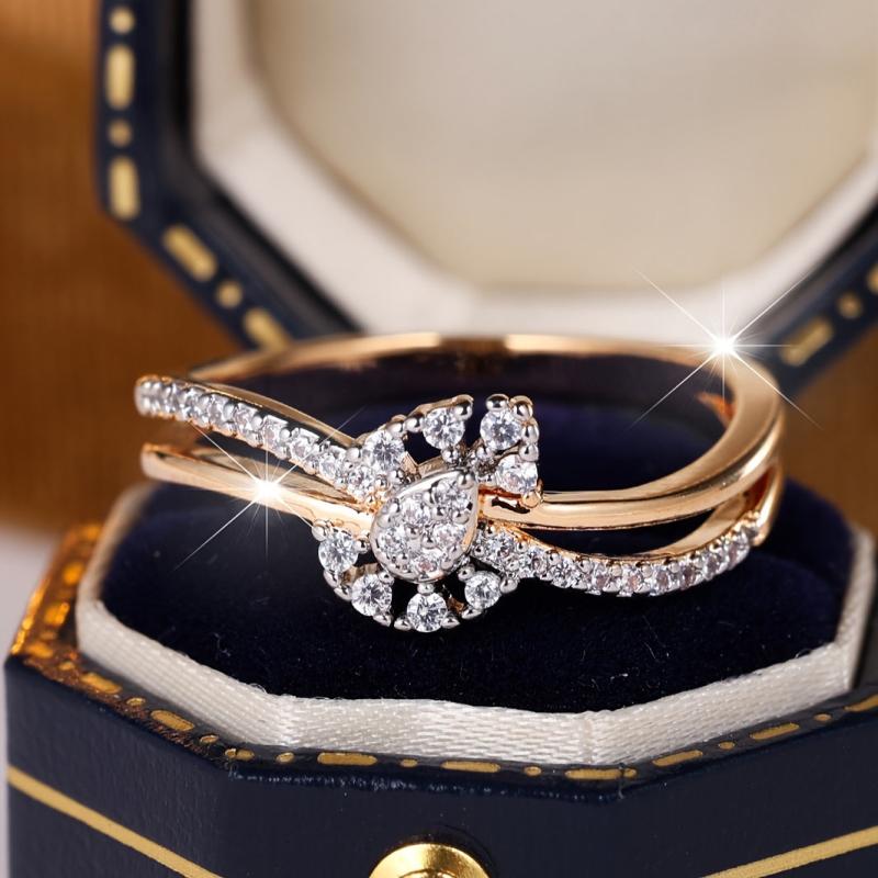 This vintage boho engagement ring set features a dual tone copper band with synthetic cubic zirconia stones, perfect for bridal wedding banquets.