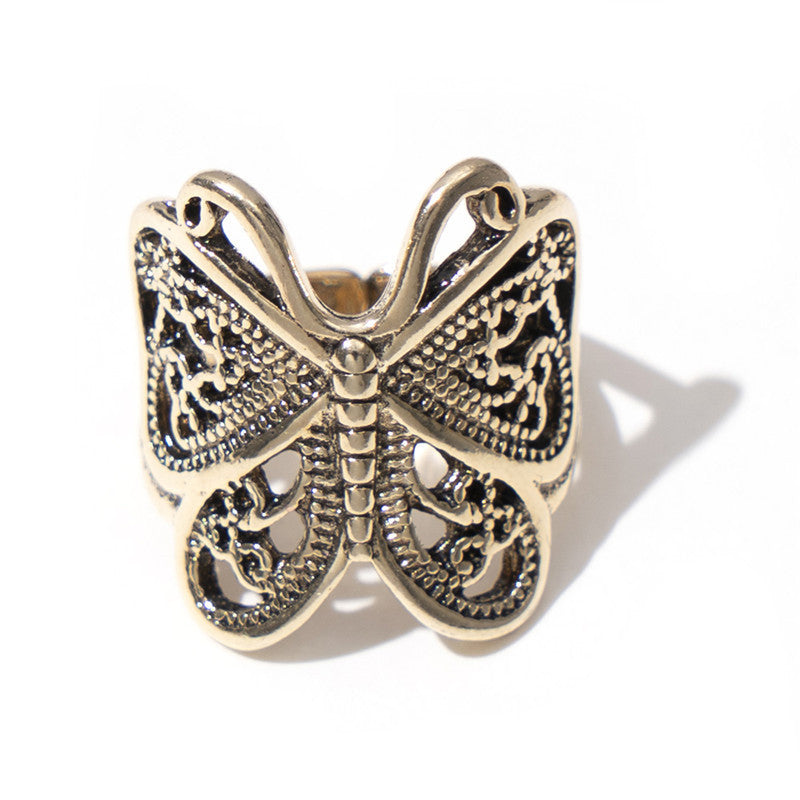 This set includes two vintage style butterfly rings.