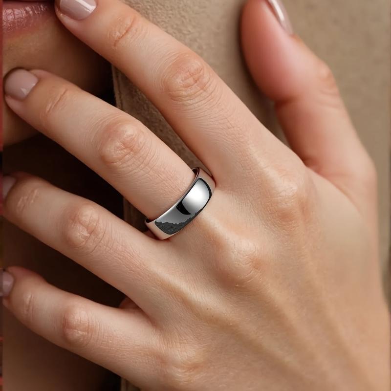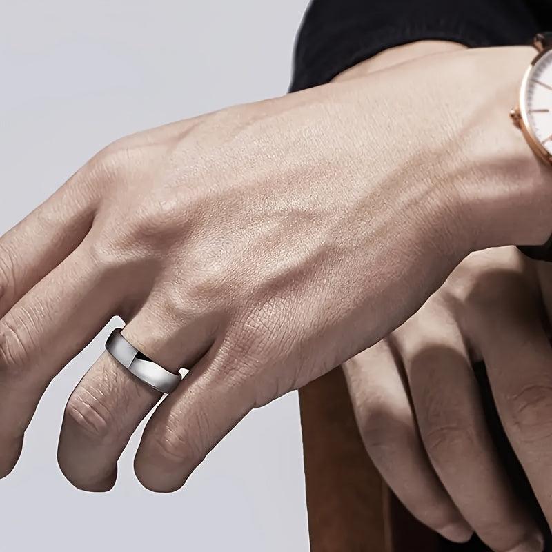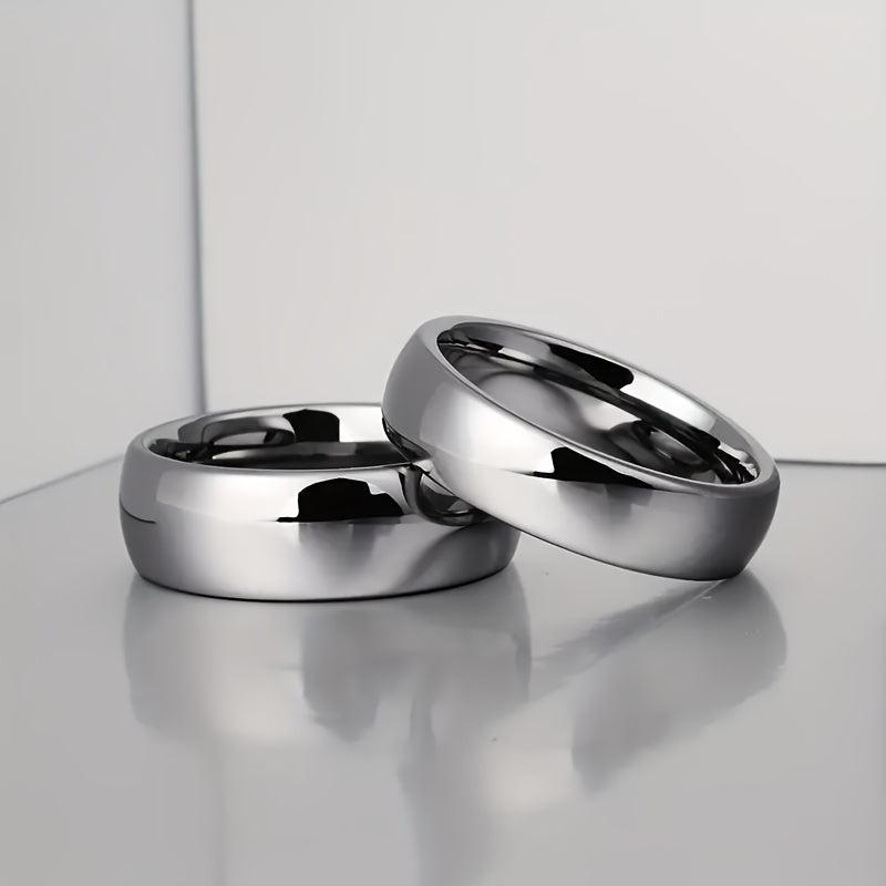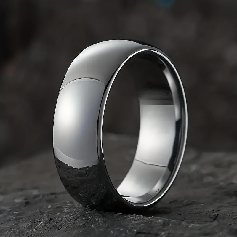 Add a touch of vintage charm to your look with this classic stainless steel ring. The 8mm band features a silvery glossy finish that is sure to make a statement.