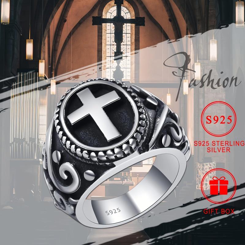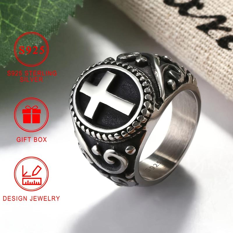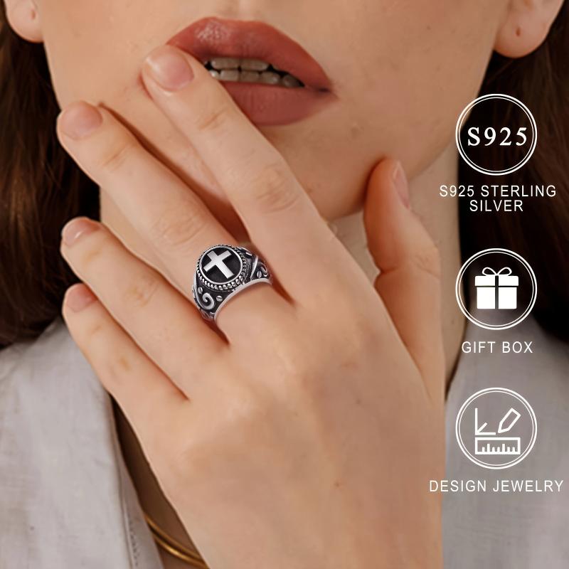 This vintage cross ring is crafted in S925 silver, suitable for both men and women. It adds a classic retro touch to your attire, making it a perfect holiday gift.