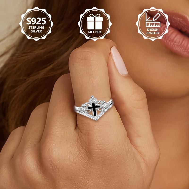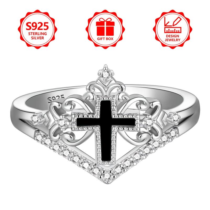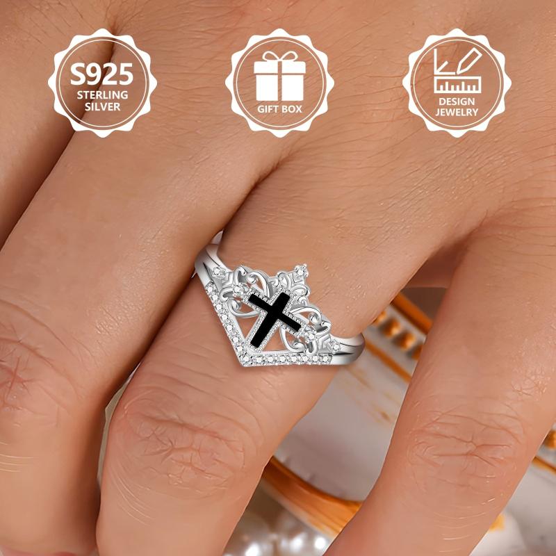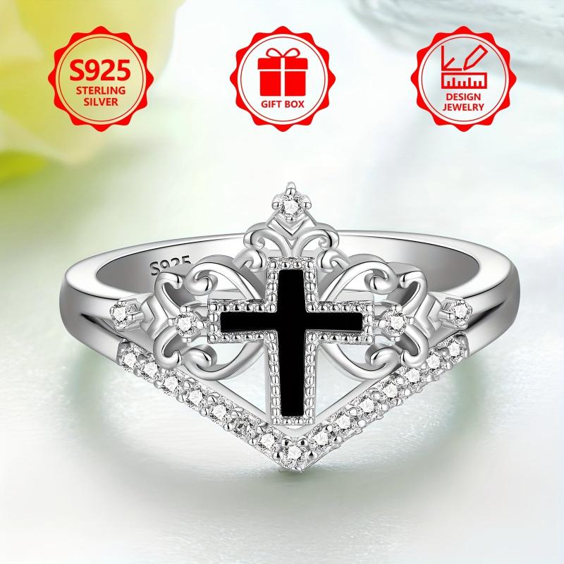 This S925 silver ring features a cross design with sparkling cubic zirconia, perfect for daily wear and as a holiday gift. The vintage-inspired style adds a touch of elegance to any outfit.