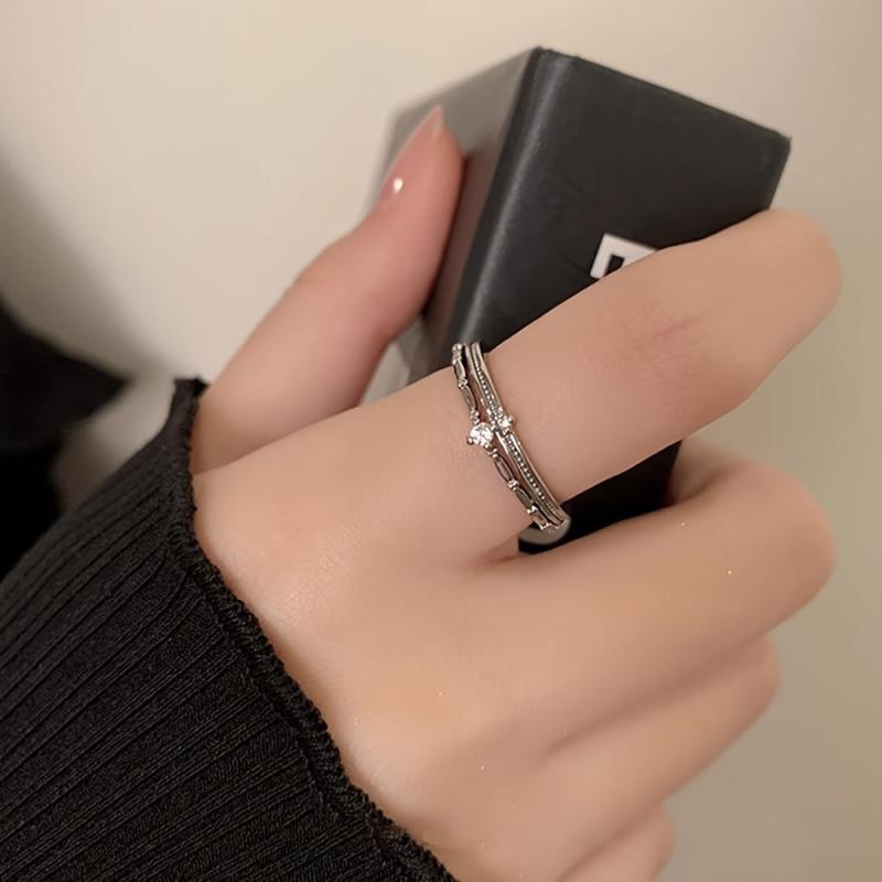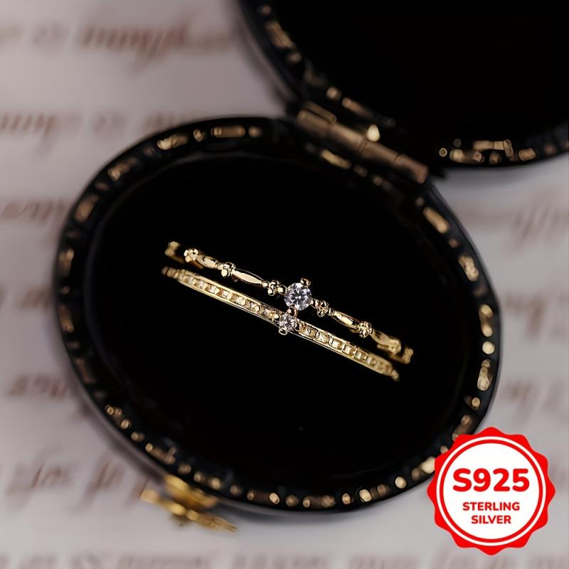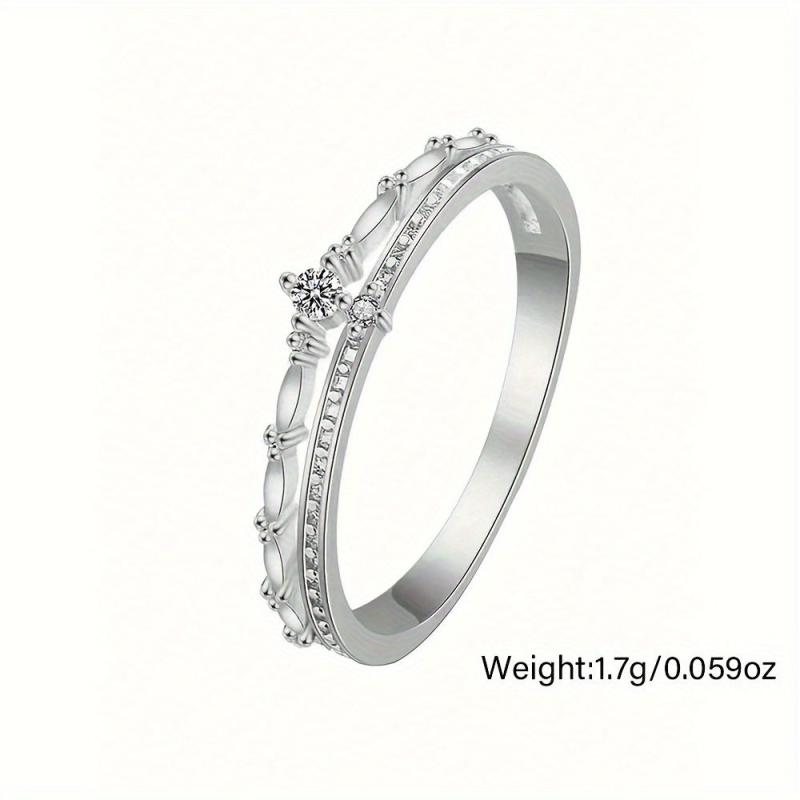 This double layer crown ring is made of S925 sterling silver featuring synthetic cubic zirconia. Perfect for women or gatherings with a vintage touch.