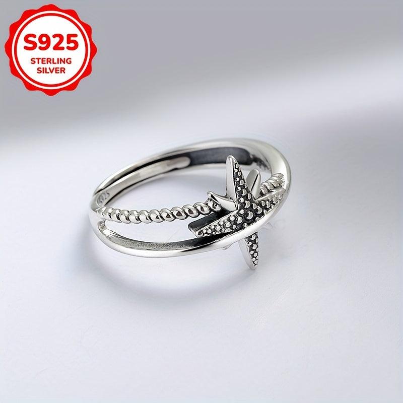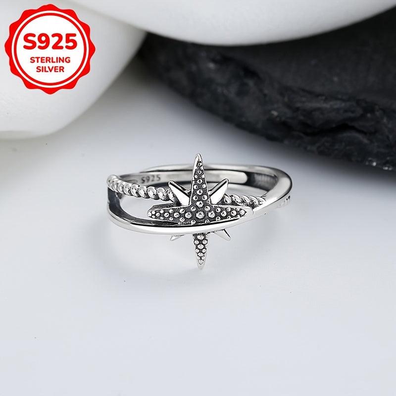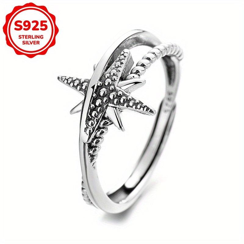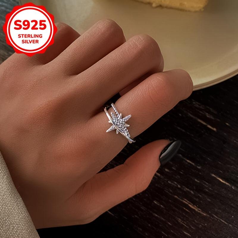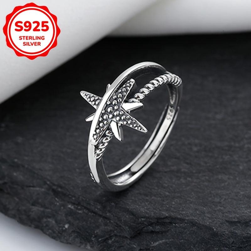 Elevate your style with this chic women's ring featuring a vintage double layer hollow design with a five-pointed star. Crafted from 925 silver, this adjustable ring is versatile and lightweight at 2.5g.