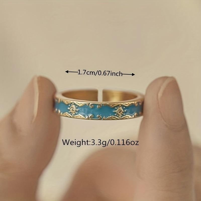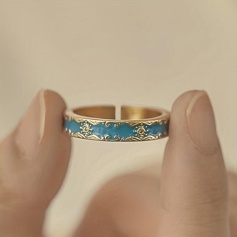 Elegant vintage ring featuring enamel and zircon, adjustable design for a perfect fit.