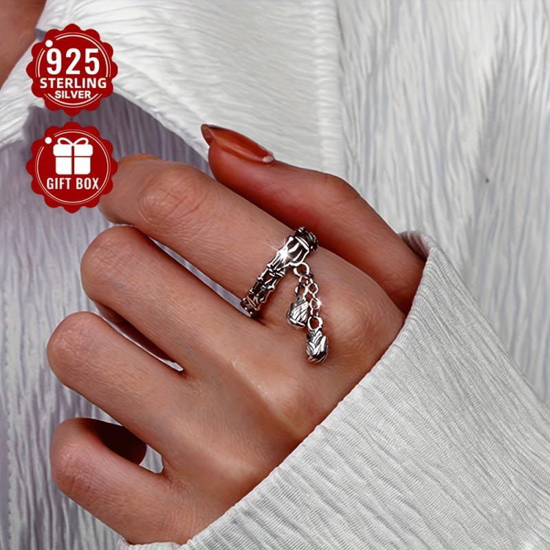 This high-end ring features a bamboo knot design with a delicate tassel pendant. Perfect for daily wear and special occasions.