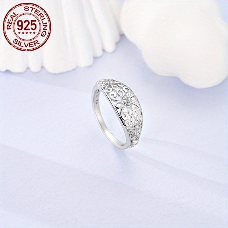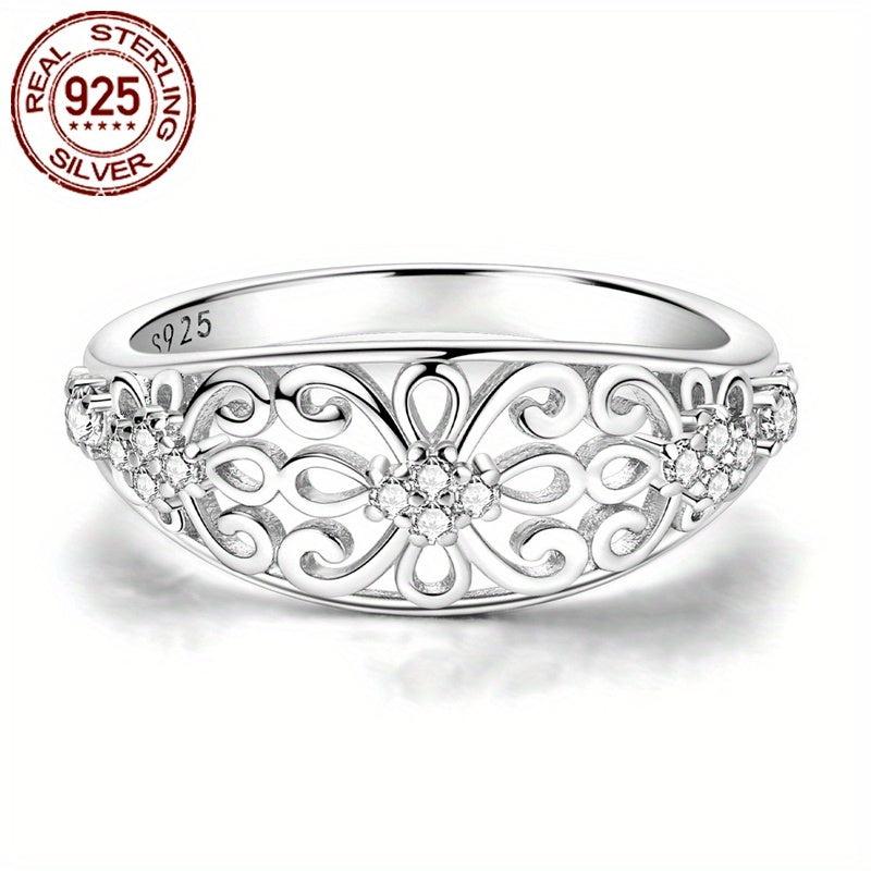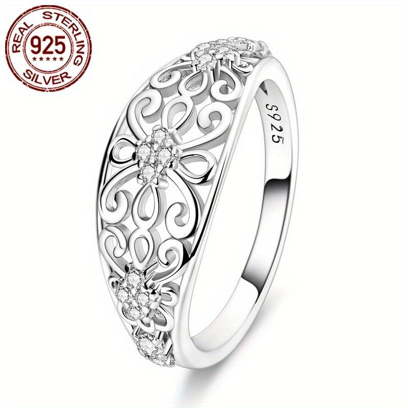 This vintage hollow flower pattern ring is made of 925 sterling silver with zirconia inlay. Perfect for women, girls, wedding, party, or as a gift for birthdays or Christmas.