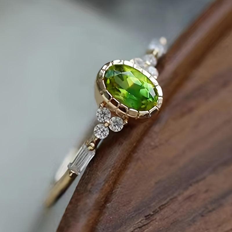 Elegant green cubic zirconia ring perfect for daily wear or special occasions. Durable metal with a versatile design.