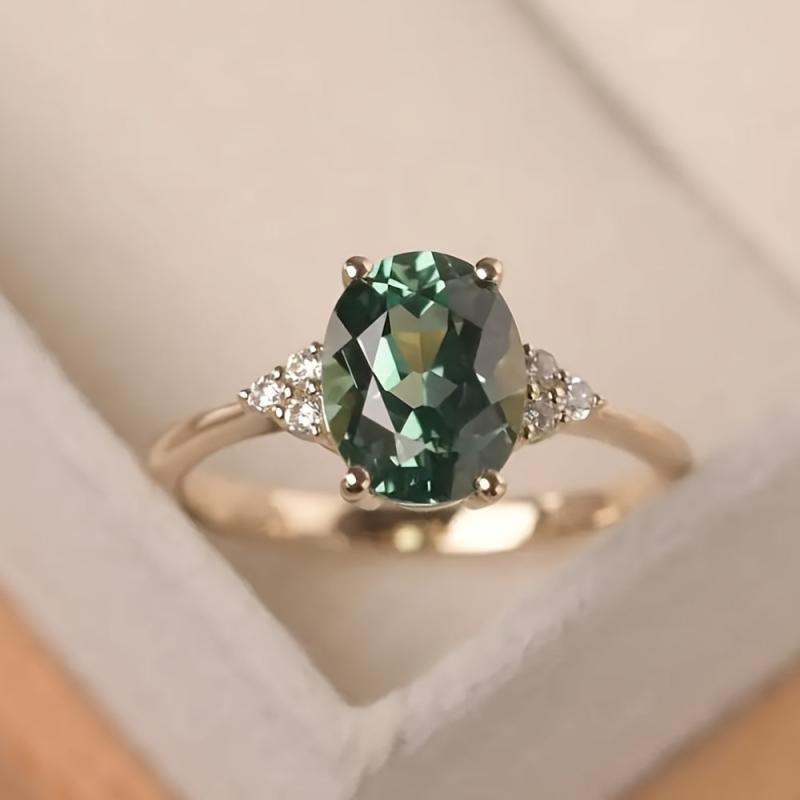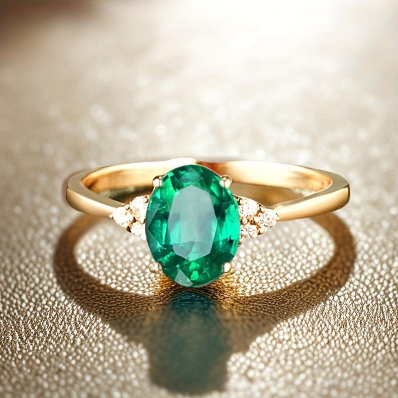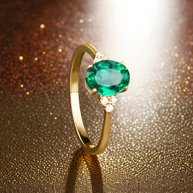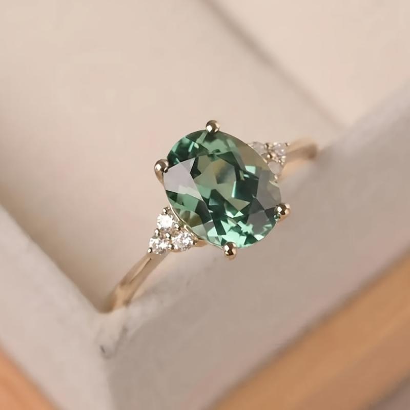 Elegant oval green synthetic zirconia wedding band for women, perfect for daily wear or special occasions. An ideal Valentine's gift.