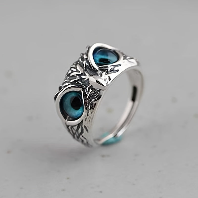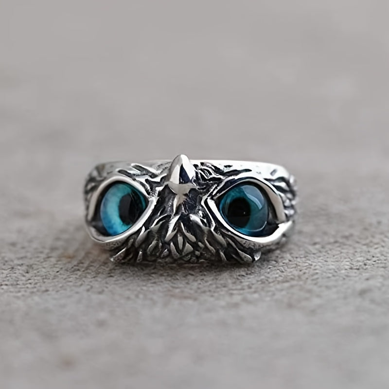 Add a spooky touch to your Halloween outfit with this vintage-style demon eye owl ring. Made of silver, this retro animal ring is adjustable to fit most sizes. It's a faux jewelry piece that makes a great gift for men.