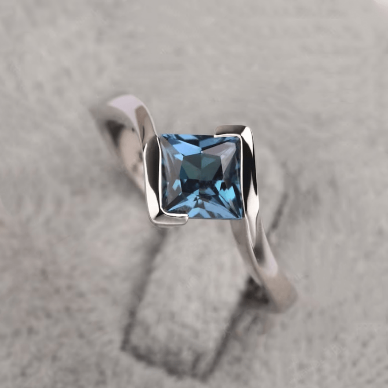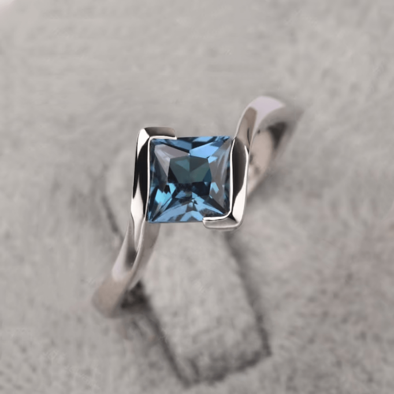 This vintage ring features a hollow out filigree design with a square synthetic gemstone and is made of copper with synthetic zirconia. Perfect for engagement and everyday wear.