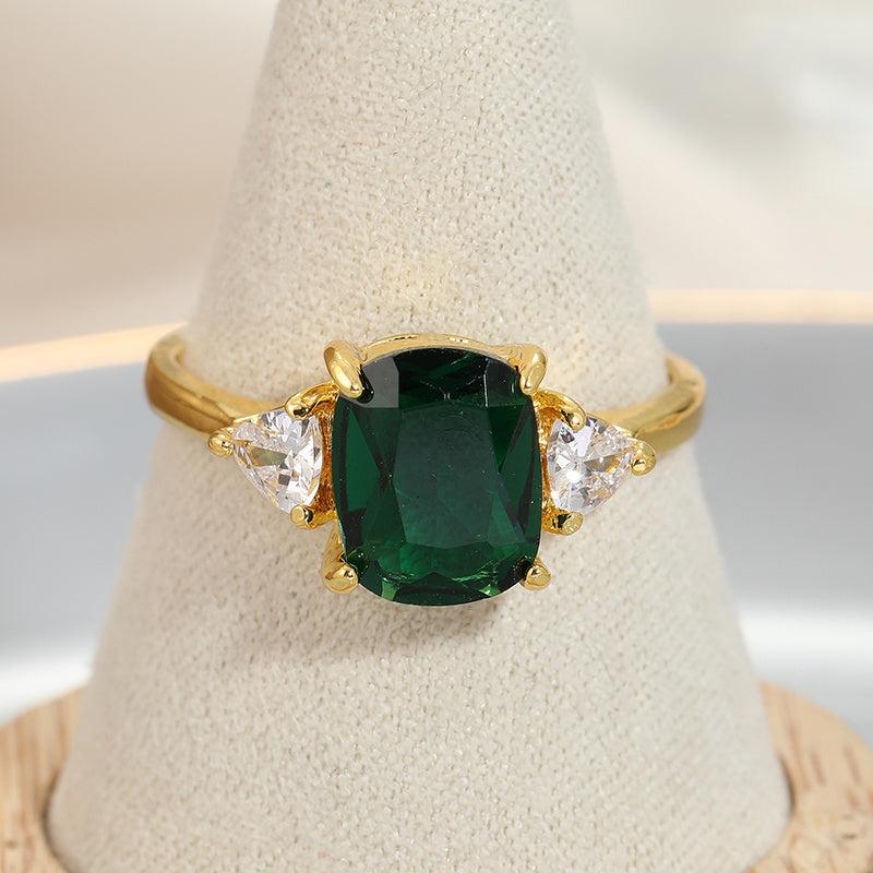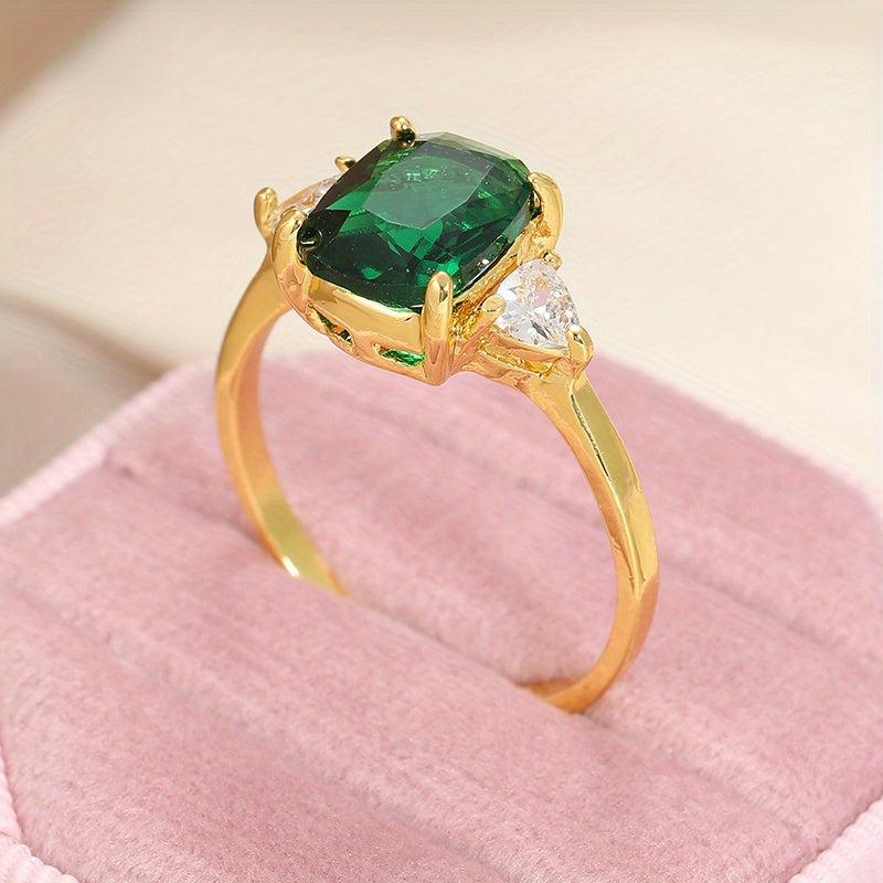 Elegant and timeless ring featuring a green synthetic gemstone and cubic zirconia accents. Perfect for daily wear, parties, or special occasions. Makes a great gift for mothers.