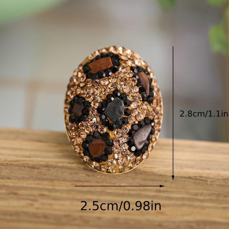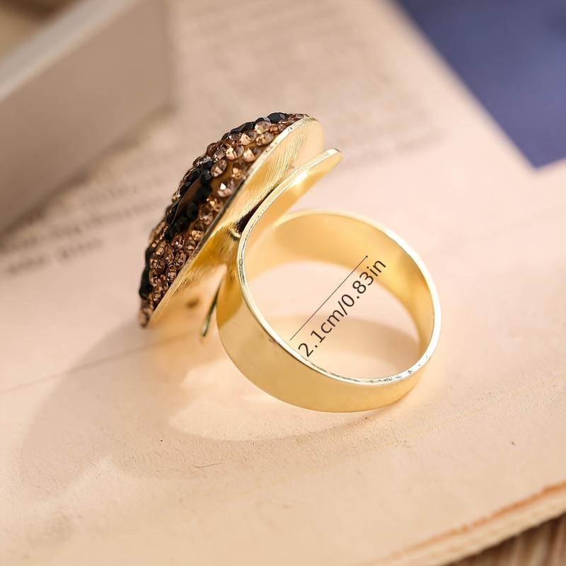 Add a touch of wild elegance with this vintage leopard print ring featuring golden tone copper band and brown & amber gemstones. Perfect for casual wear or parties.