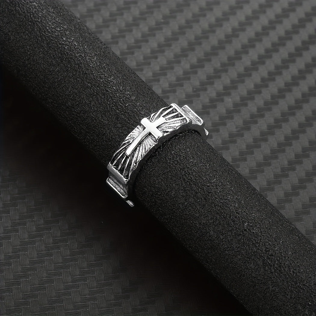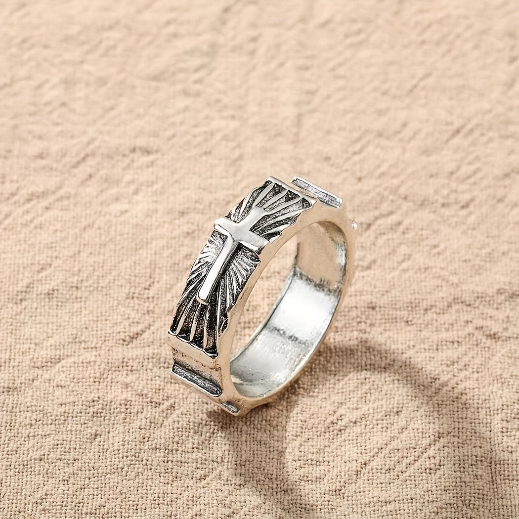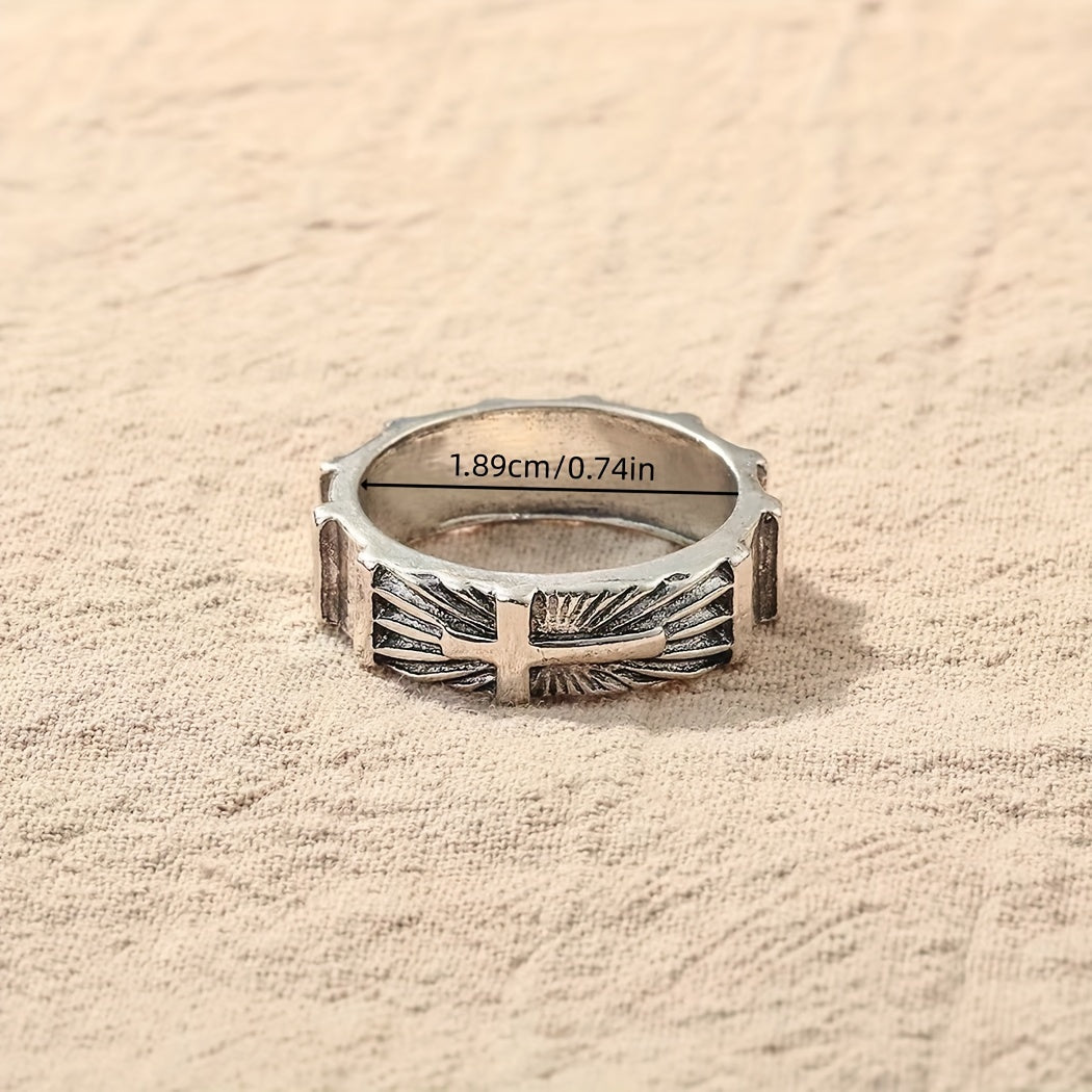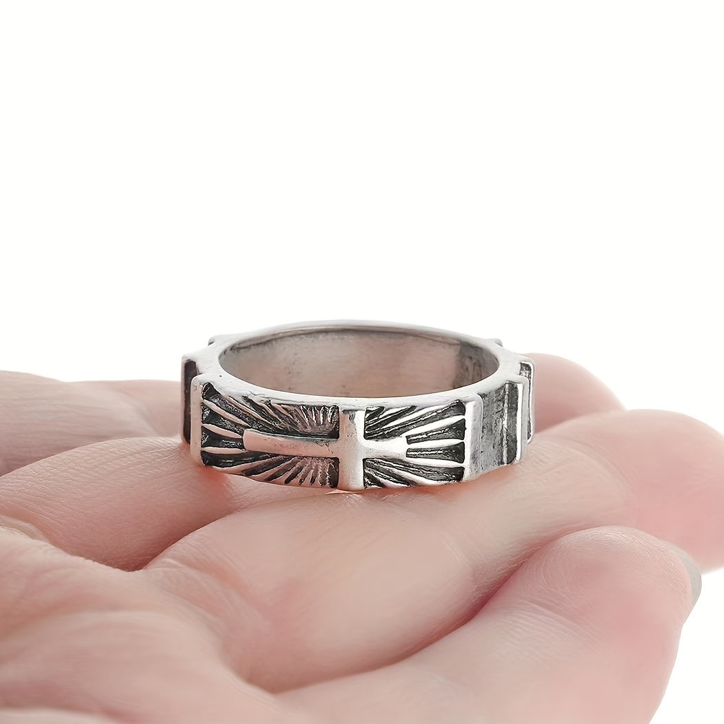 This vintage men's cross ring is a stylish piece of jewelry that adds a touch of elegance to any outfit.