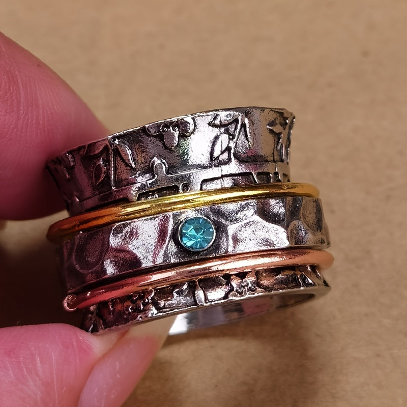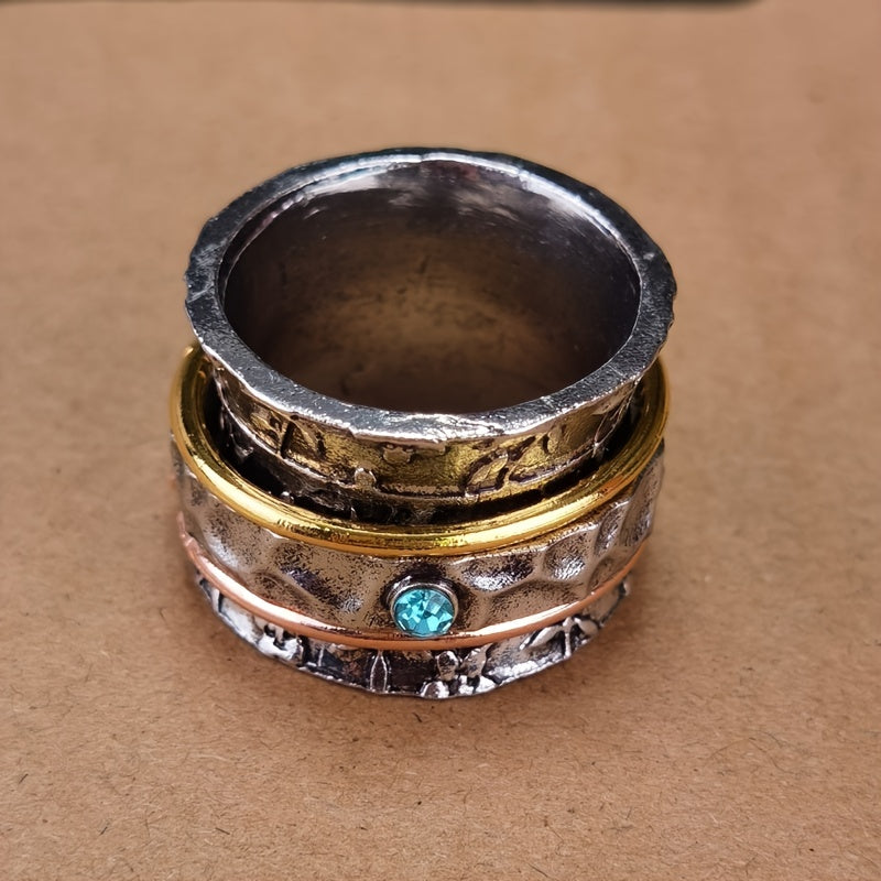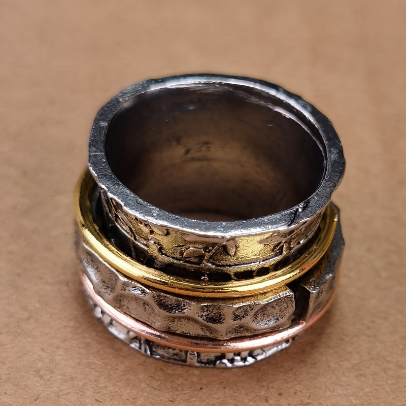 Add a touch of vintage charm with this golden ring featuring intricate detailing. Perfect for adding a stylish accent to your look.
