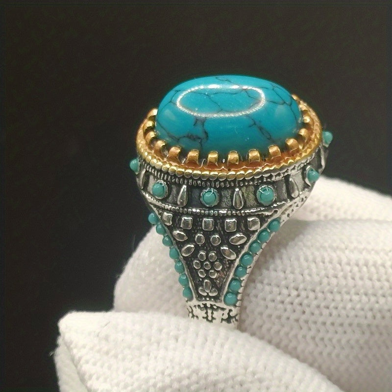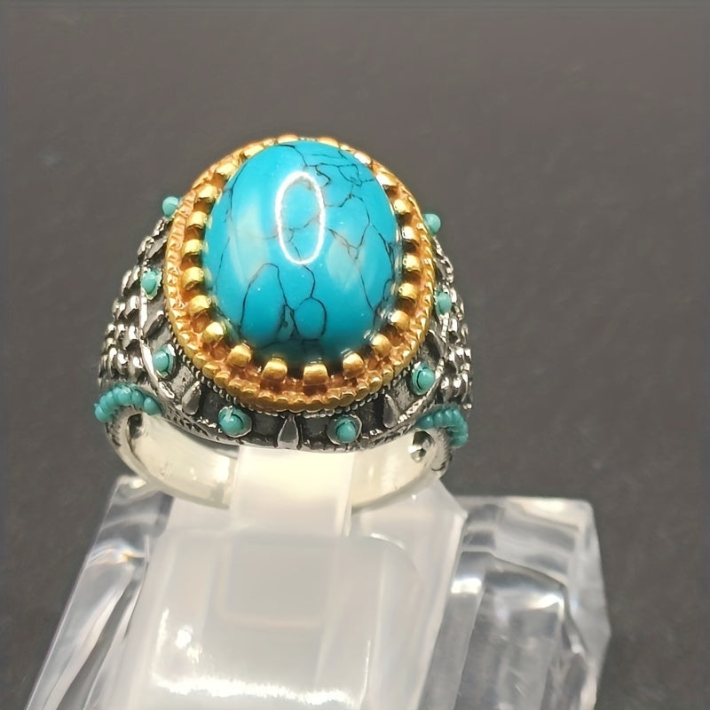 This vintage men's ring features a two-tone design with inlaid turquoise, creating a stylish and timeless look.