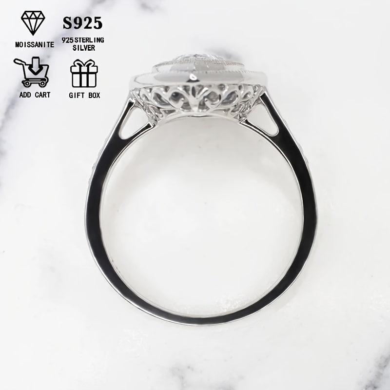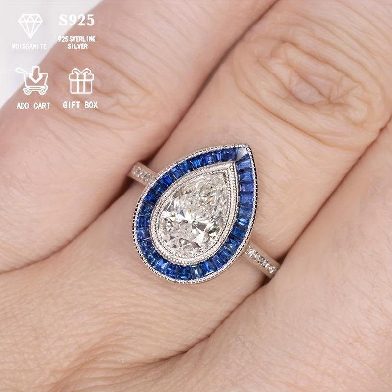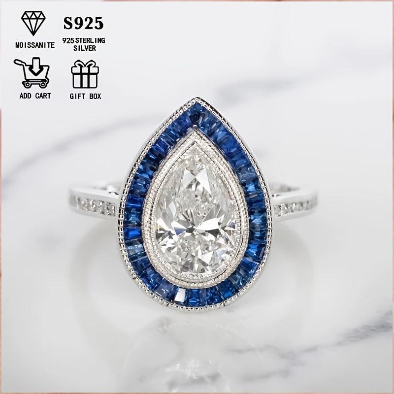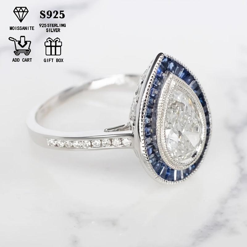This unique ring features a 2ct pear-shaped moissanite stone set in a low-allergy S925 silver band. The vintage palace design adds a touch of elegance to any outfit.