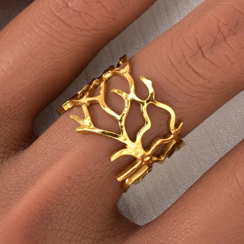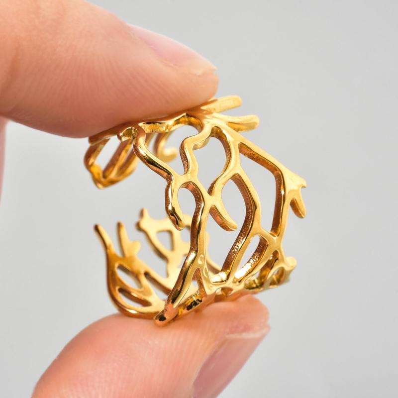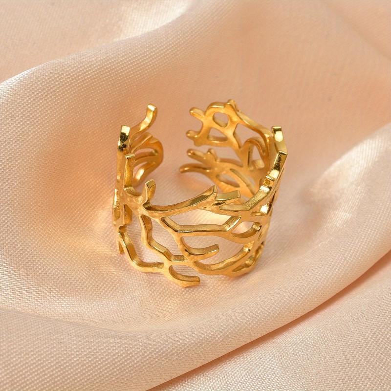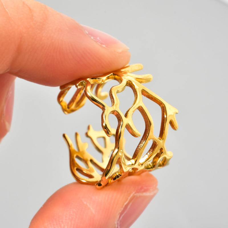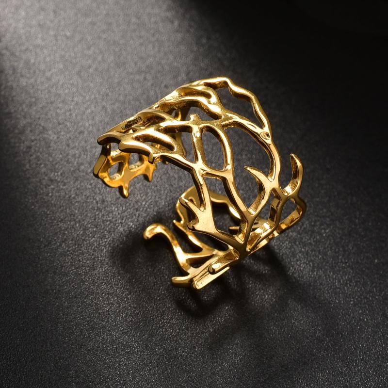 This vintage punk style cuff ring is made of stainless steel with an irregular mesh hollow branch design. Perfect for parties, vacations, and Valentine's Day gifts.