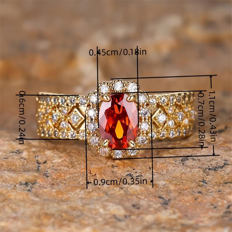 Beautiful vintage-style ring set featuring a 4 prong oval red synthetic gemstone with zirconia accents. Perfect for anniversaries, engagements, or as a special gift.