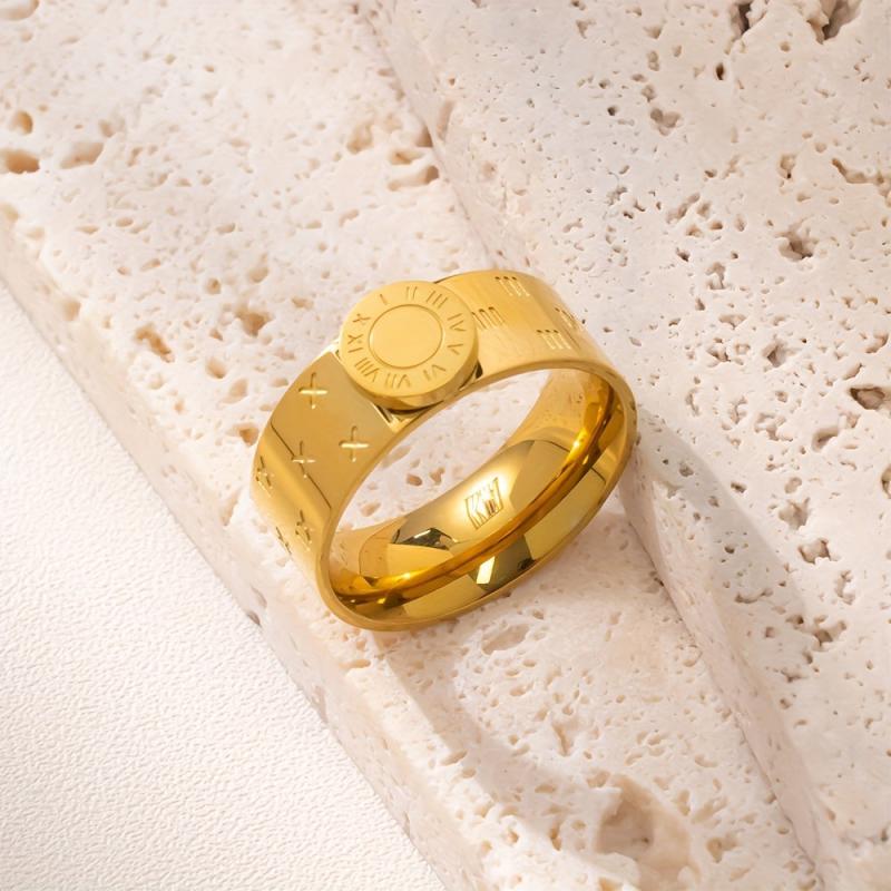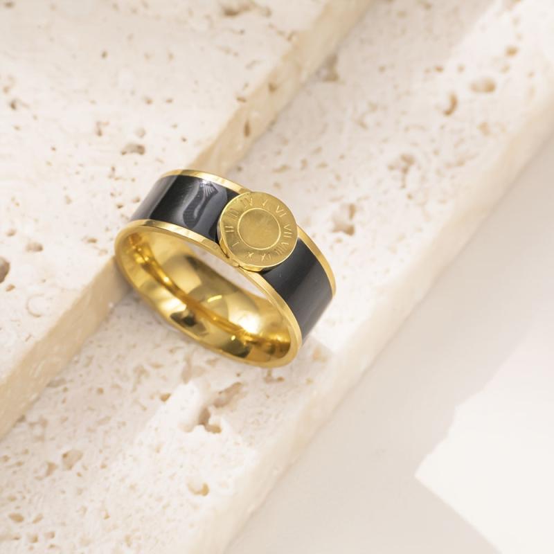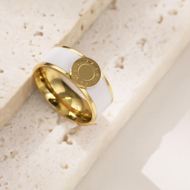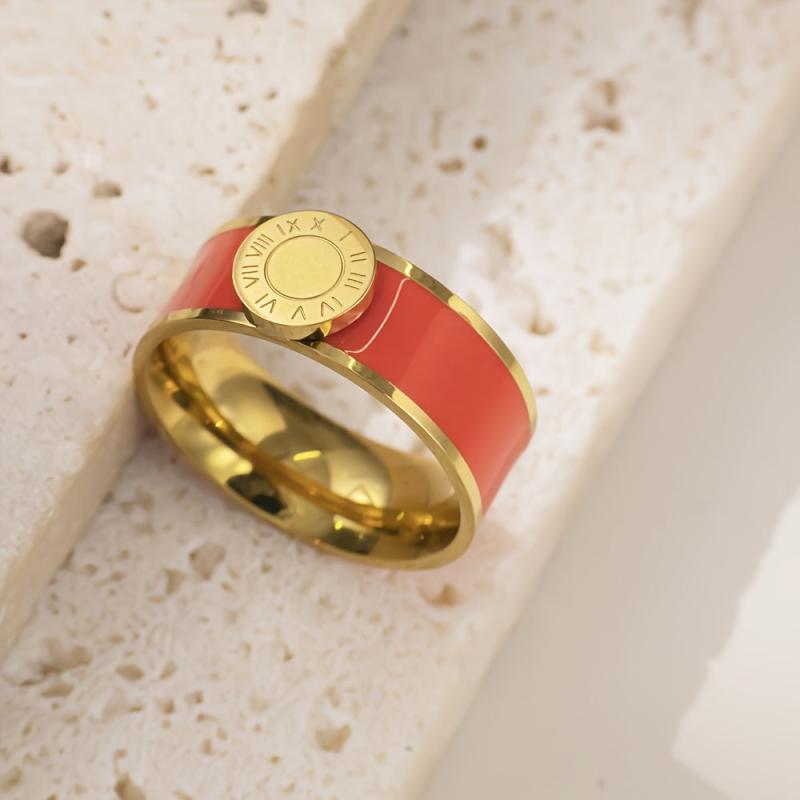 This waterproof ring features Roman numerals engraved on 304 stainless steel with enamel drip, making it perfect for casual attire, weddings, and Valentine's jewelry.