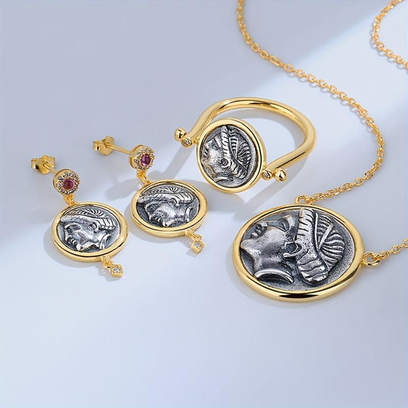 Elevate your style with this vintage-inspired double sided rotatable ring featuring a zirconia April birthstone. Crafted from S925 sterling silver and 18K golden plated, this coin jewelry piece exudes luxury and elegance.