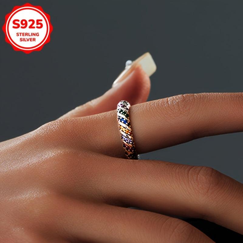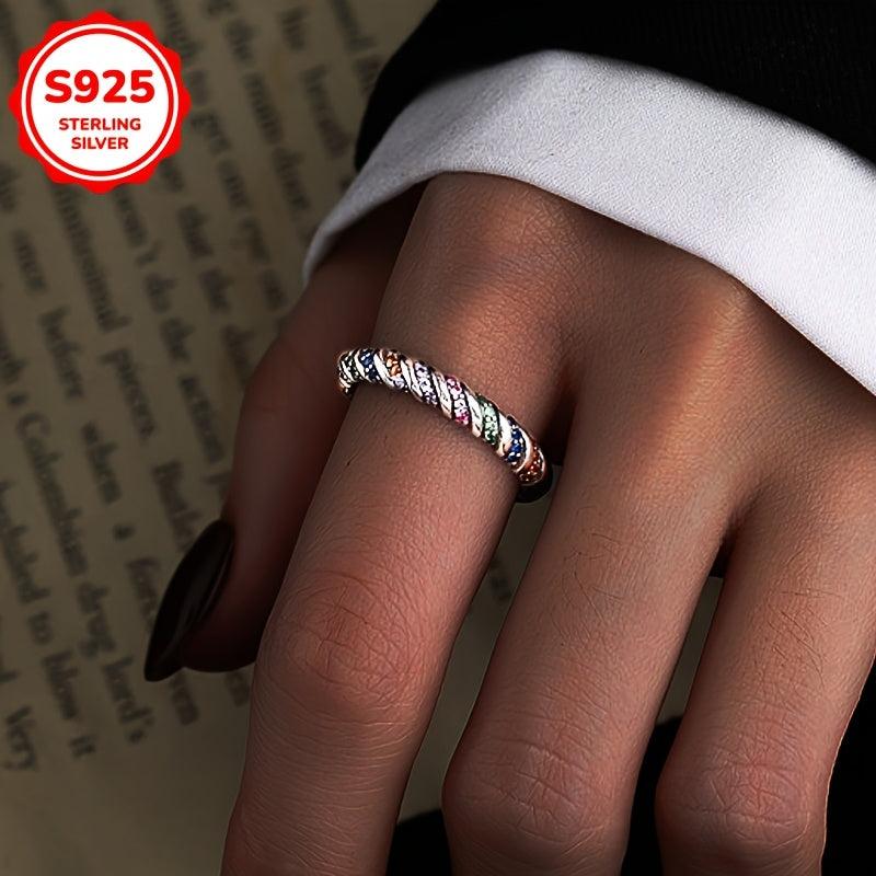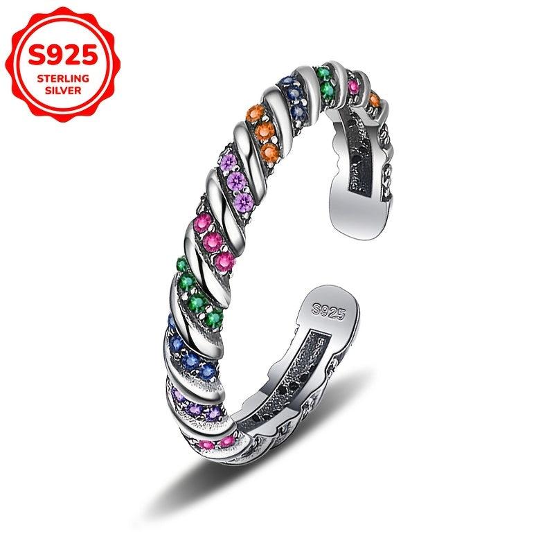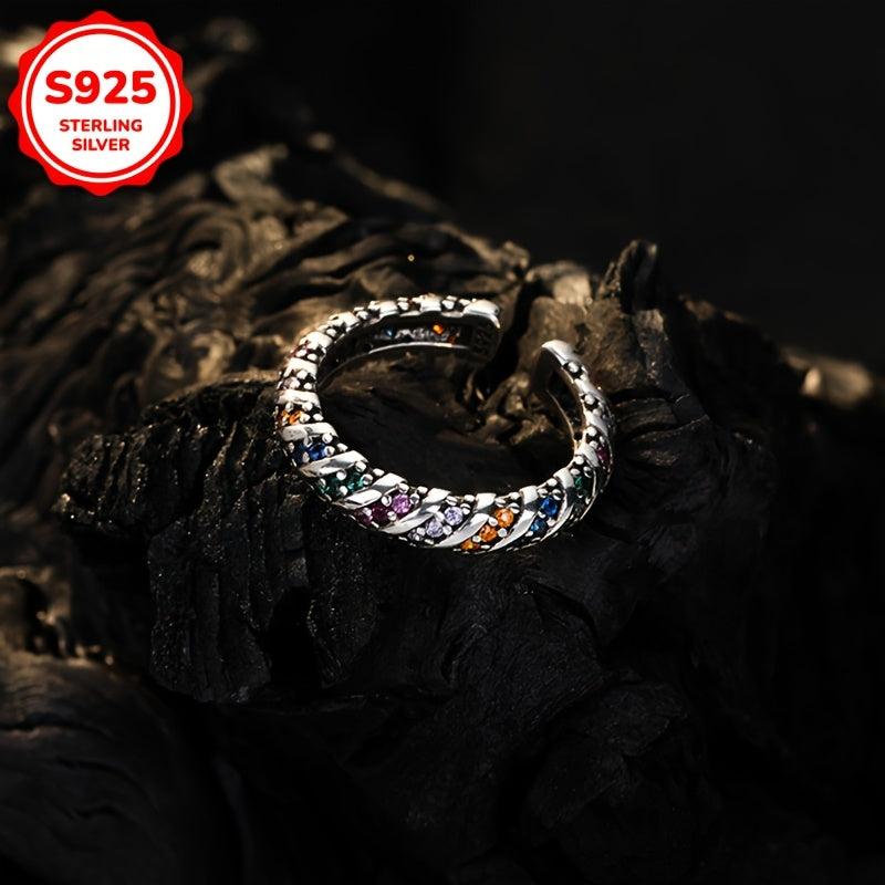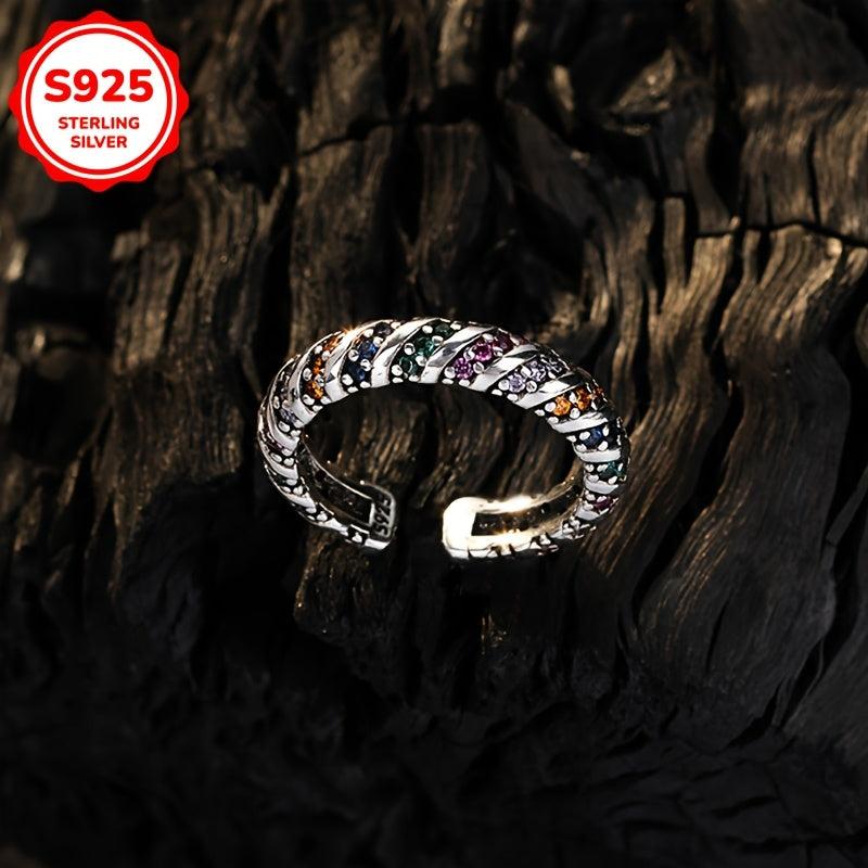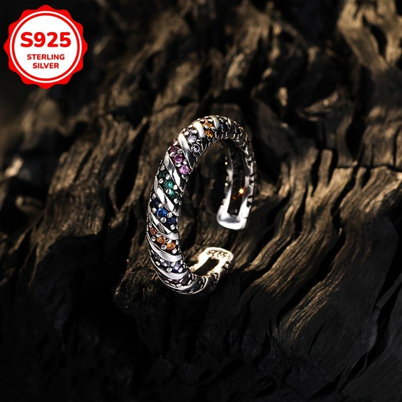 This beautiful vintage S925 silver ring features a rotating design with March birthstone zirconia. The ring is adjustable and suitable for women.