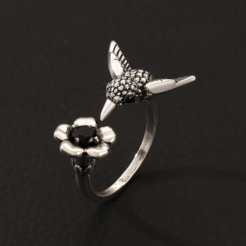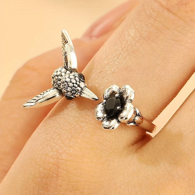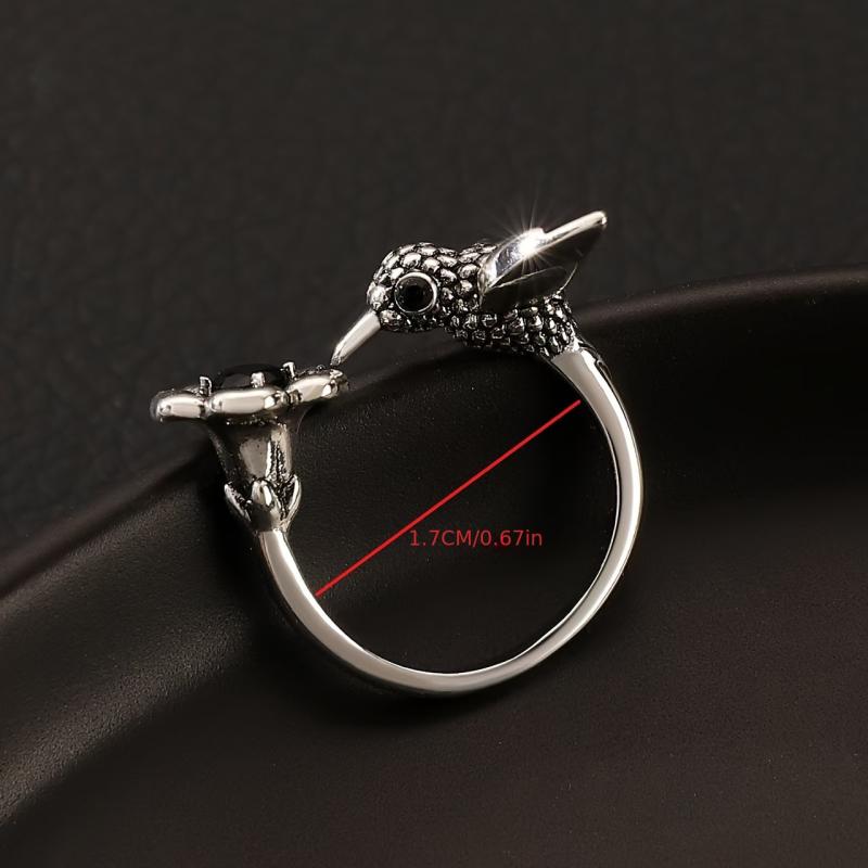 This stunning vintage ring features a zirconia bird and flower design, making it perfect for women's daily wear, parties, and Halloween. It is a stylish everyday accessory that adds a touch of elegance to any outfit.