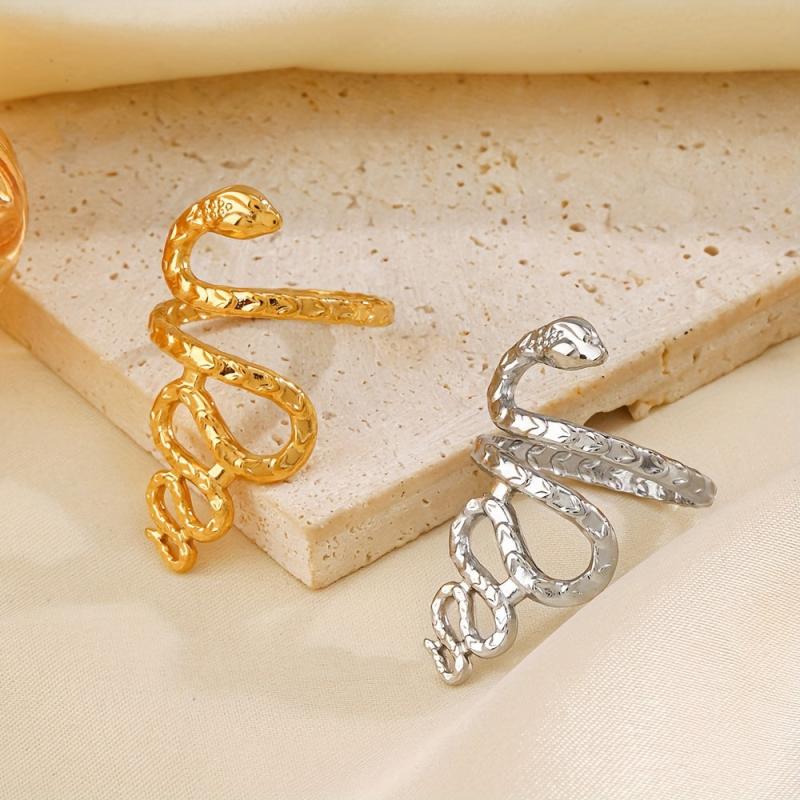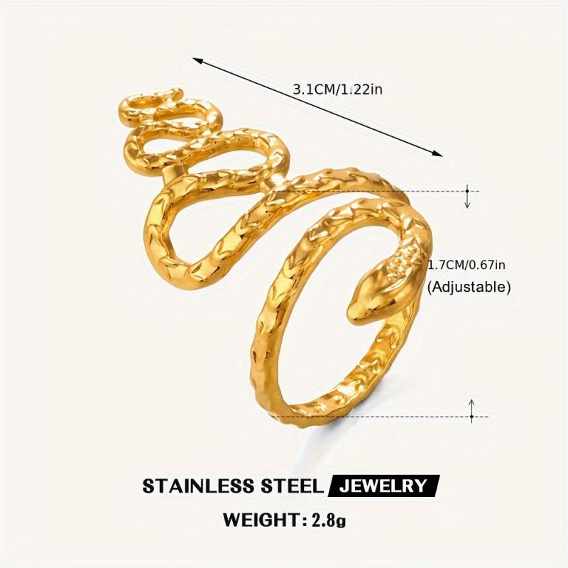 Add a touch of vintage charm to your outfit with this snake shaped stainless steel ring. The ring features a KC golden plated finish and is fully adjustable to fit most finger sizes.