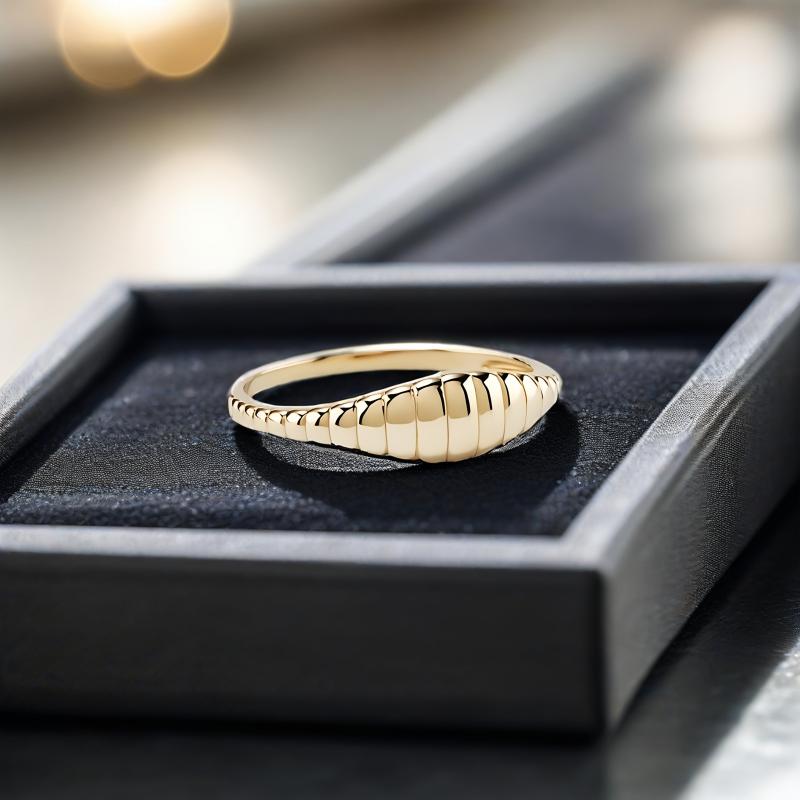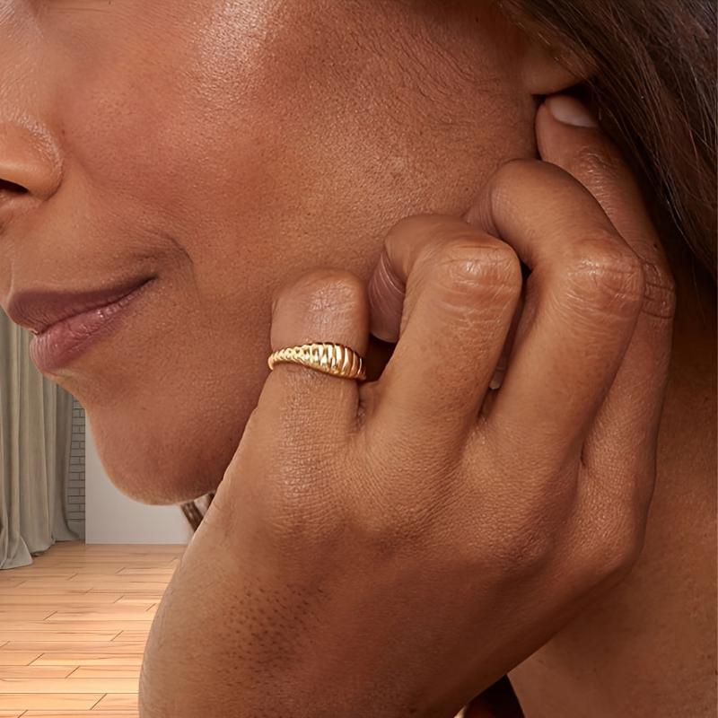 This vintage-inspired ring features a bread pattern design and is plated with 14K gold. Suitable for all seasons, it's perfect for daily wear or as a gift.
