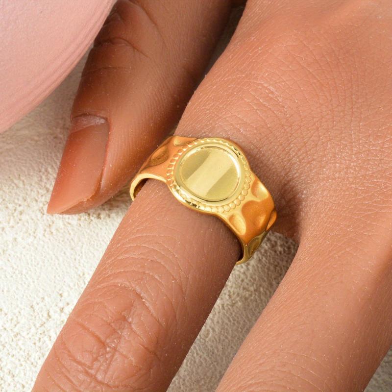 This vintage textured stainless steel ring features a hammered texture and smooth round design, making it perfect for music festivals and everyday wear. Suitable for both men and women, this ring is a versatile accessory.