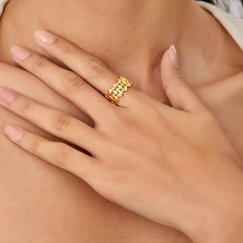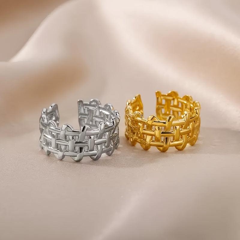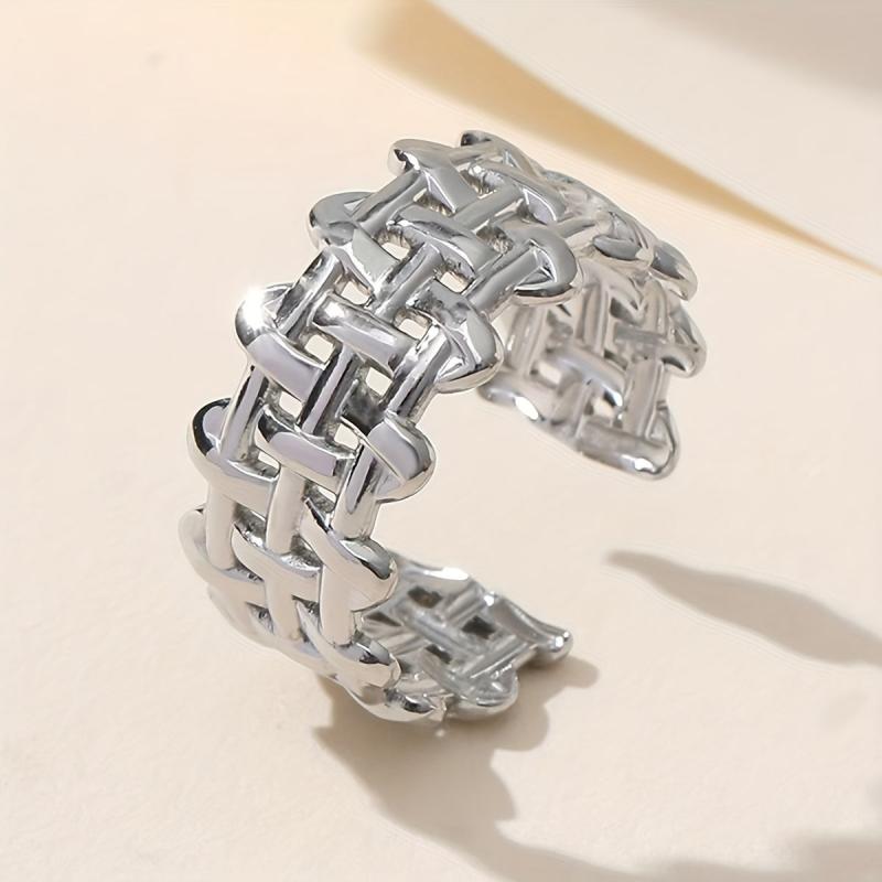 Elegant vintage-inspired ring crafted from stainless steel with an intricate chain design, ideal for daily wear or special occasions. Makes a great gift item.