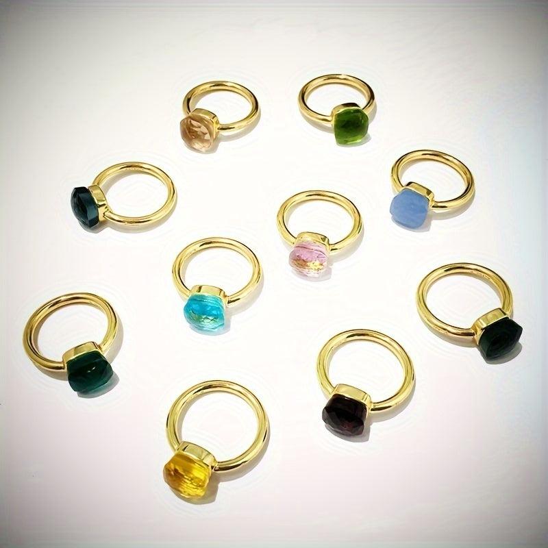 Elegant vintage style ring with 18K golden plating, featuring glass mosaic design. Perfect for daily wear or as a thoughtful gift.