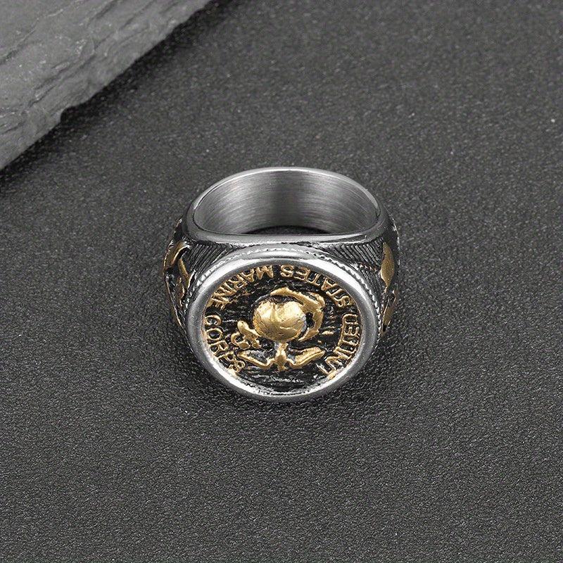 This men's ring features a striking eagle design in 18K gold plated stainless steel. Ideal for daily wear or special occasions, this ring is a stylish addition to any outfit.