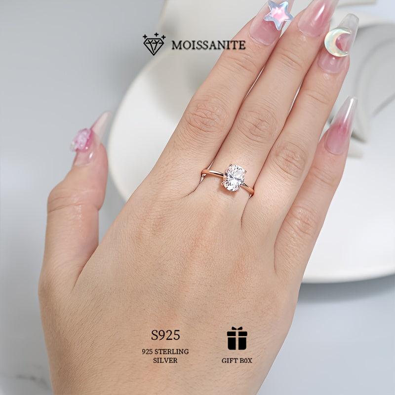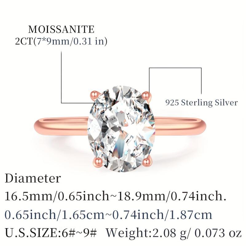 This vintage style engagement ring features a 2ct Moissanite stone set in S925 sterling silver with goose egg design. Perfect for a timeless and elegant look.