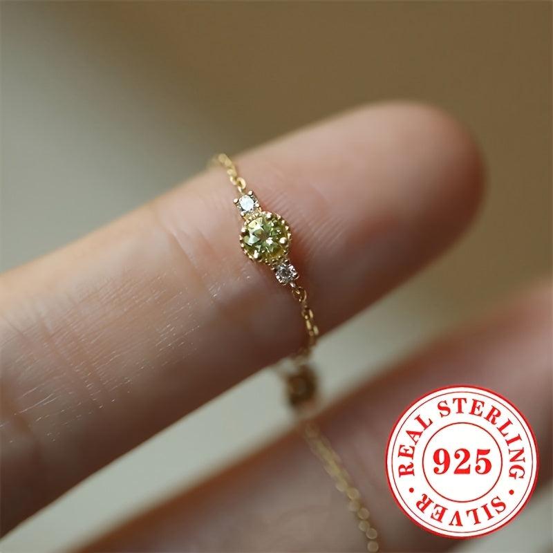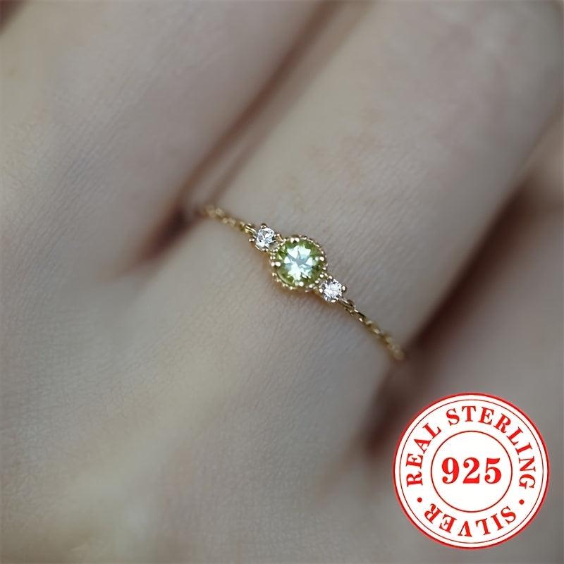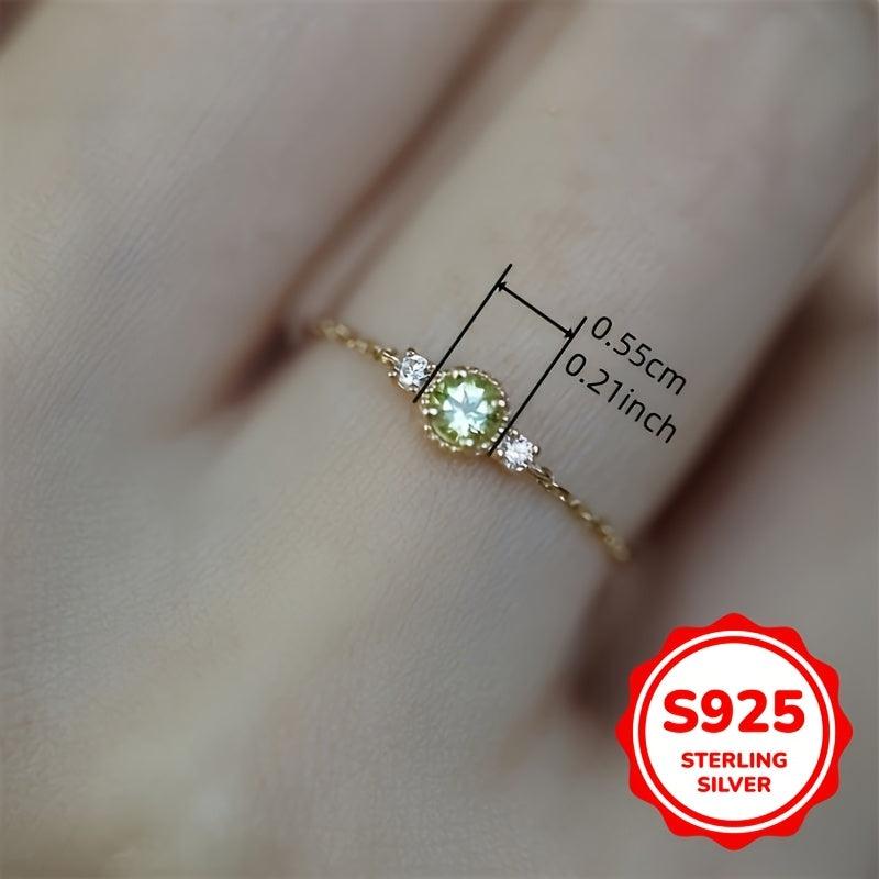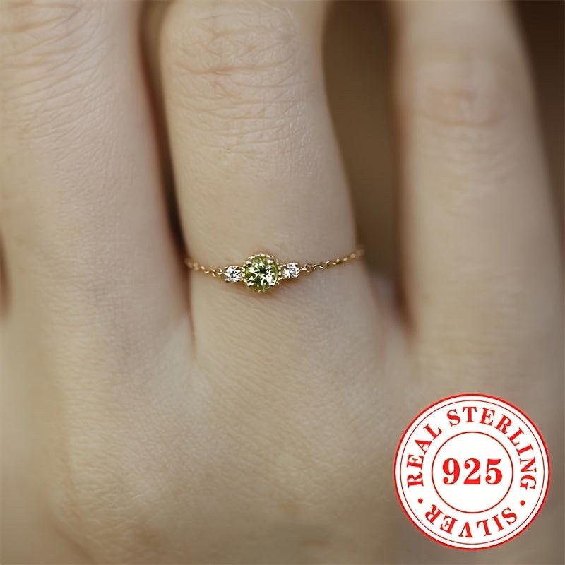 This exquisite vintage-style ring features an olive green synthetic zirconia chain on a 925 sterling silver band. Perfect for any occasion and ideal as an anniversary gift.